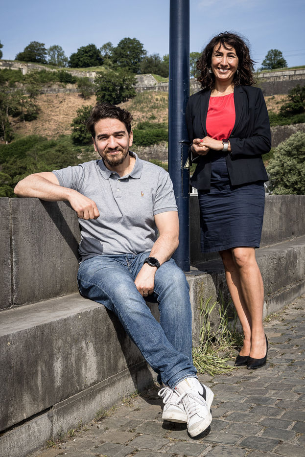 Namur, Belgique. 23 Mai 2022. Portrait de Christie Morreale, Vice-presidente du gouvernement wallon et ministre de l Emploi, de l Action sociale, de la Sante et de l Egalité des Chances et d Ibrahim Ouassari, fondateur et CEO de MolenGeek.
