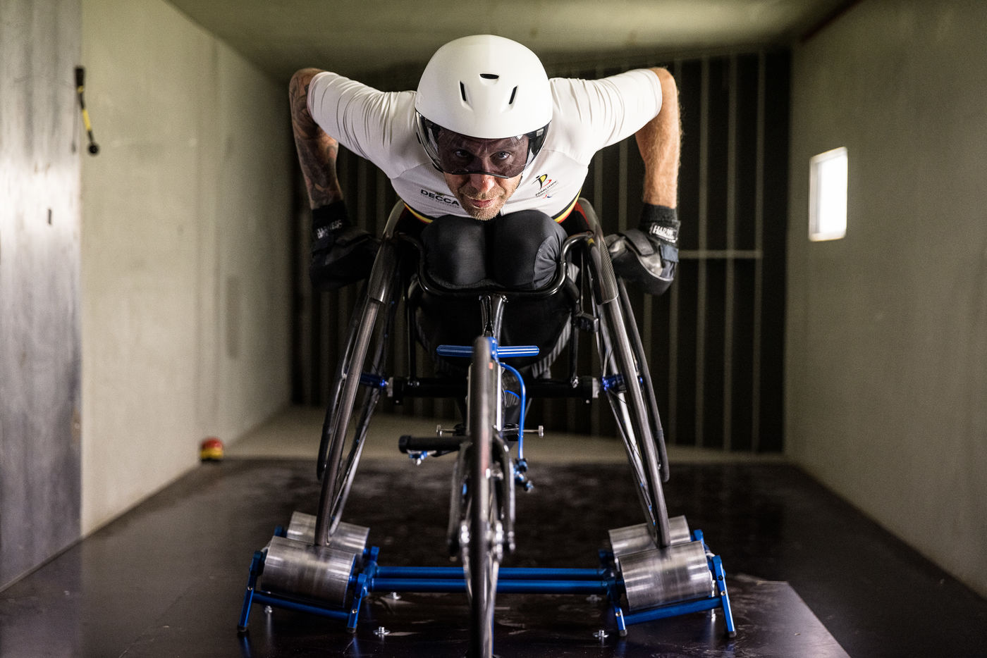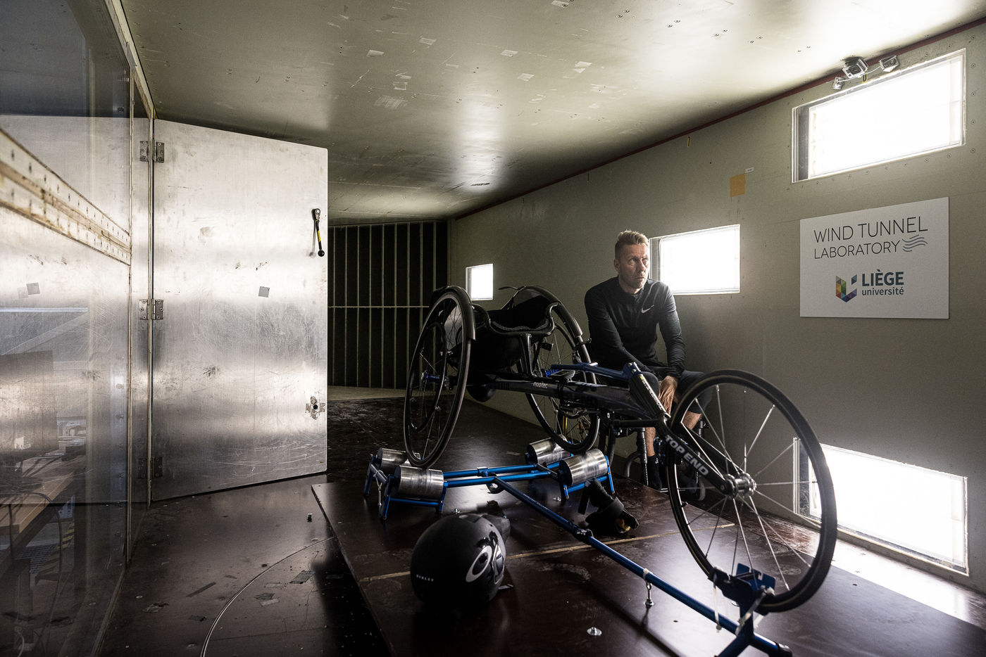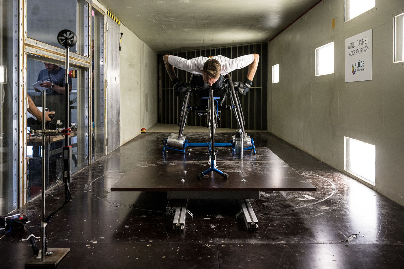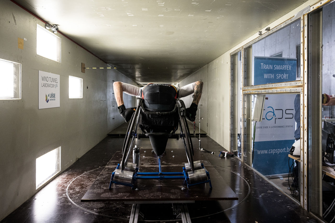 Liege, Belgium. June 14th 2022. Visit of the Wind Tunnel Lab in the ULiege premises where many athletes come to perfect their positioning in order to gain precious seconds. Roger Habsch, bronze medalist at the last Olympic Games in Tokyo was there to improve his training.