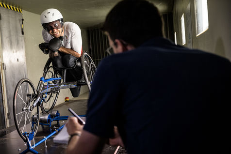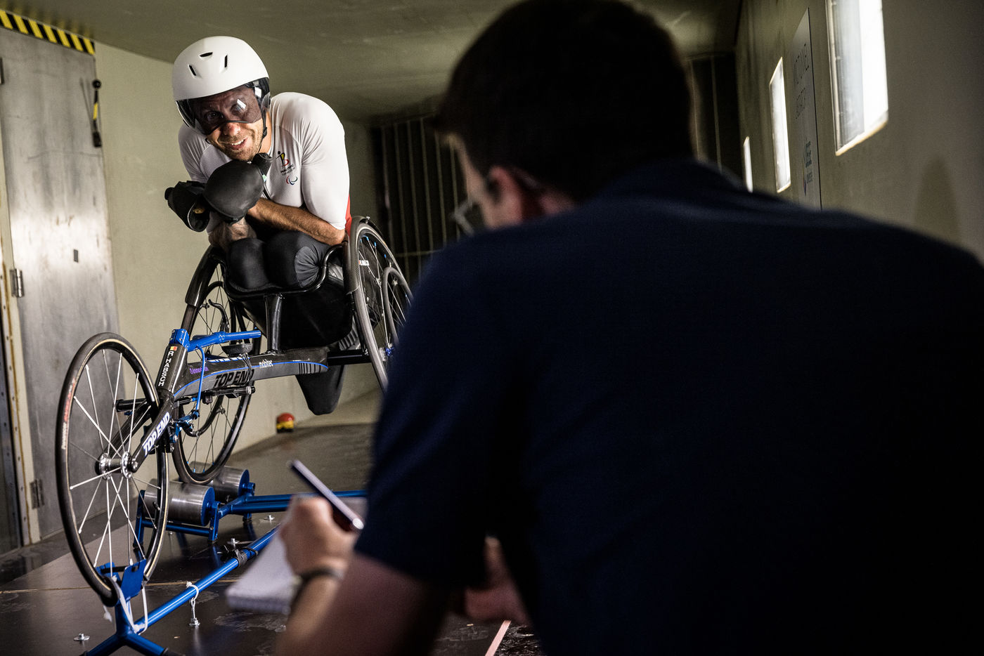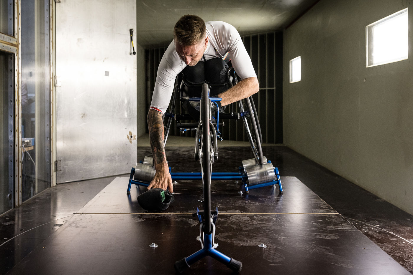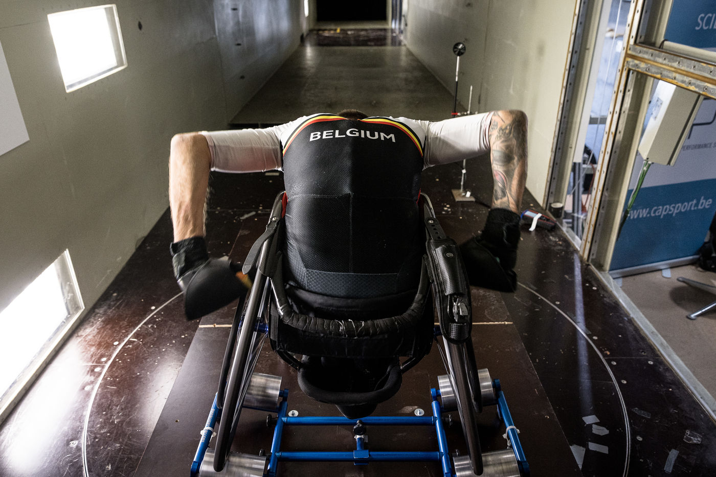 Liege, Belgium. June 14th 2022. Visit of the Wind Tunnel Lab in the ULiege premises where many athletes come to perfect their positioning in order to gain precious seconds. Roger Habsch, bronze medalist at the last Olympic Games in Tokyo was there to improve his training.