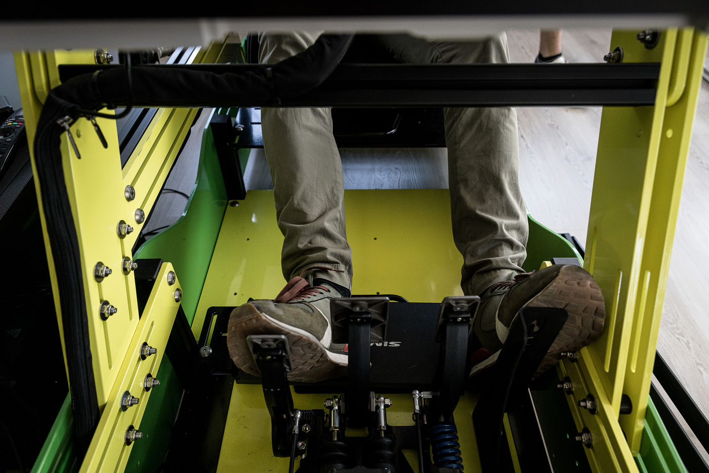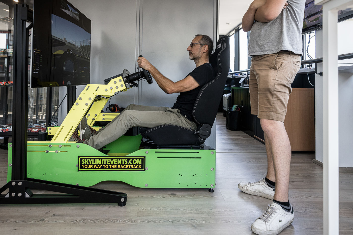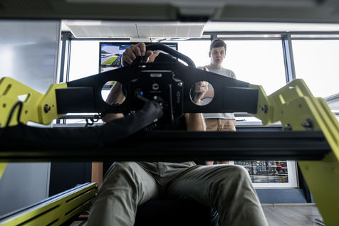 Zolder, Belgium. June 29, 2022. Circuit Zolder also hosts driving courses for amateurs. Here, a student is first trained on a simulator and then goes on to practice in real conditions on the circuit.