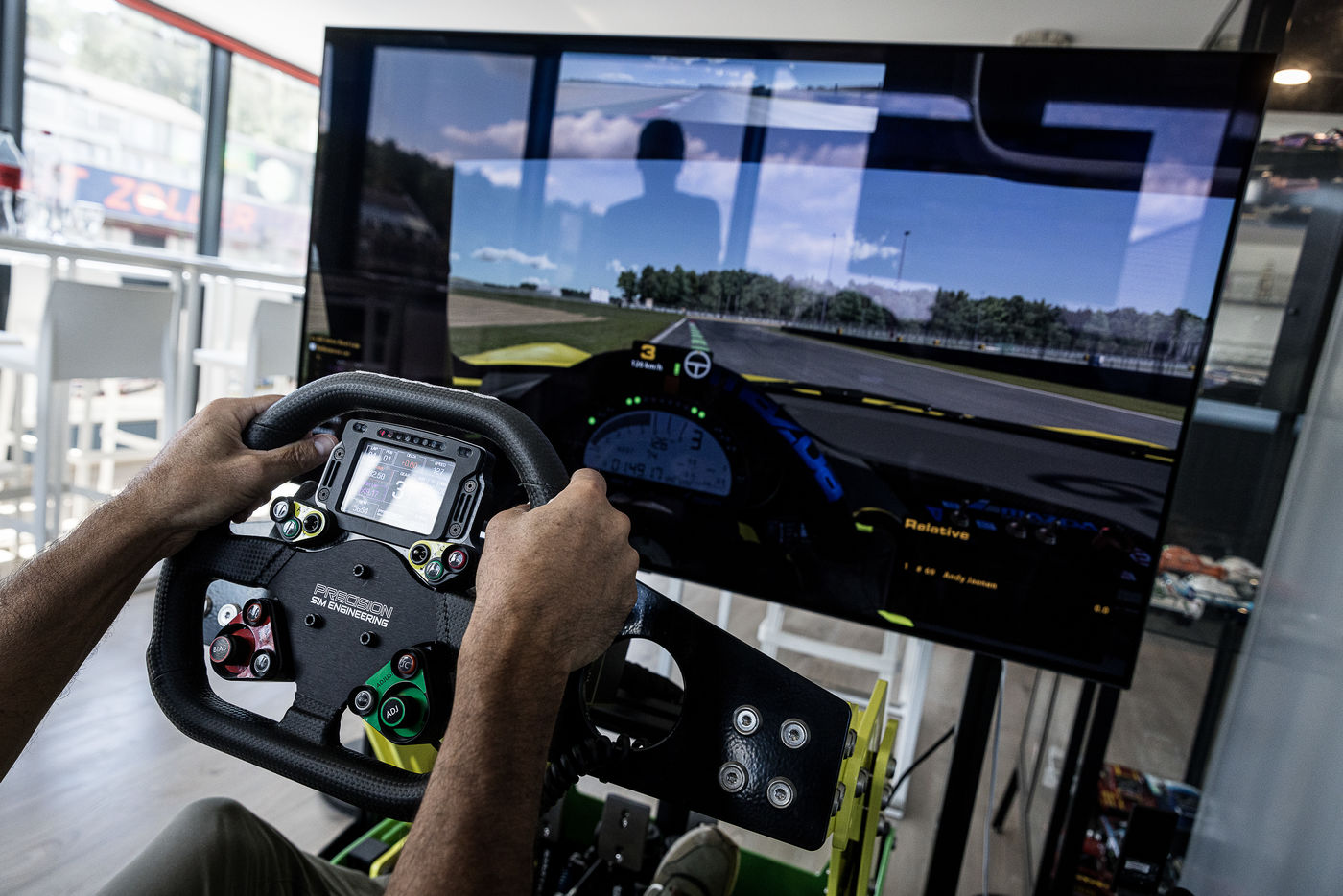 Zolder, Belgique. 29 Juin 2022. Le circuit de Zolder accueuille également des cours de pilotage destines aux amateurs. Ici, un eleve recoit d abord un ecolage sur simulateur puis passe a la pratique en conditions reelles sur le circuit.