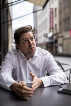 Koln, Germany. 2022-09-09. Portrait of Jeremie Vaneeckhout, member of the political party Groen. The Flemish environmental party came to meet the German environmentalists about energy.