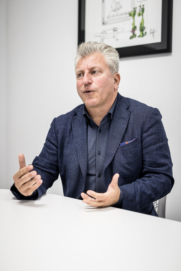 Awans, Belgium. 2022-11-21. Portrait of Manuel Pallage, CEO of NSI Group in the company's premises near Liege.