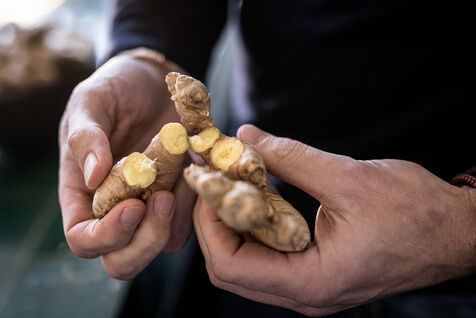 Tubize, Belgium. 2022-12-21. The Gimber company has started the production of a drink based on ginger. Visit of the company and its two co-founders: Sylvie Schollier and Dimitri Oosterlynck and the new CEO, Tim Kamanayo.