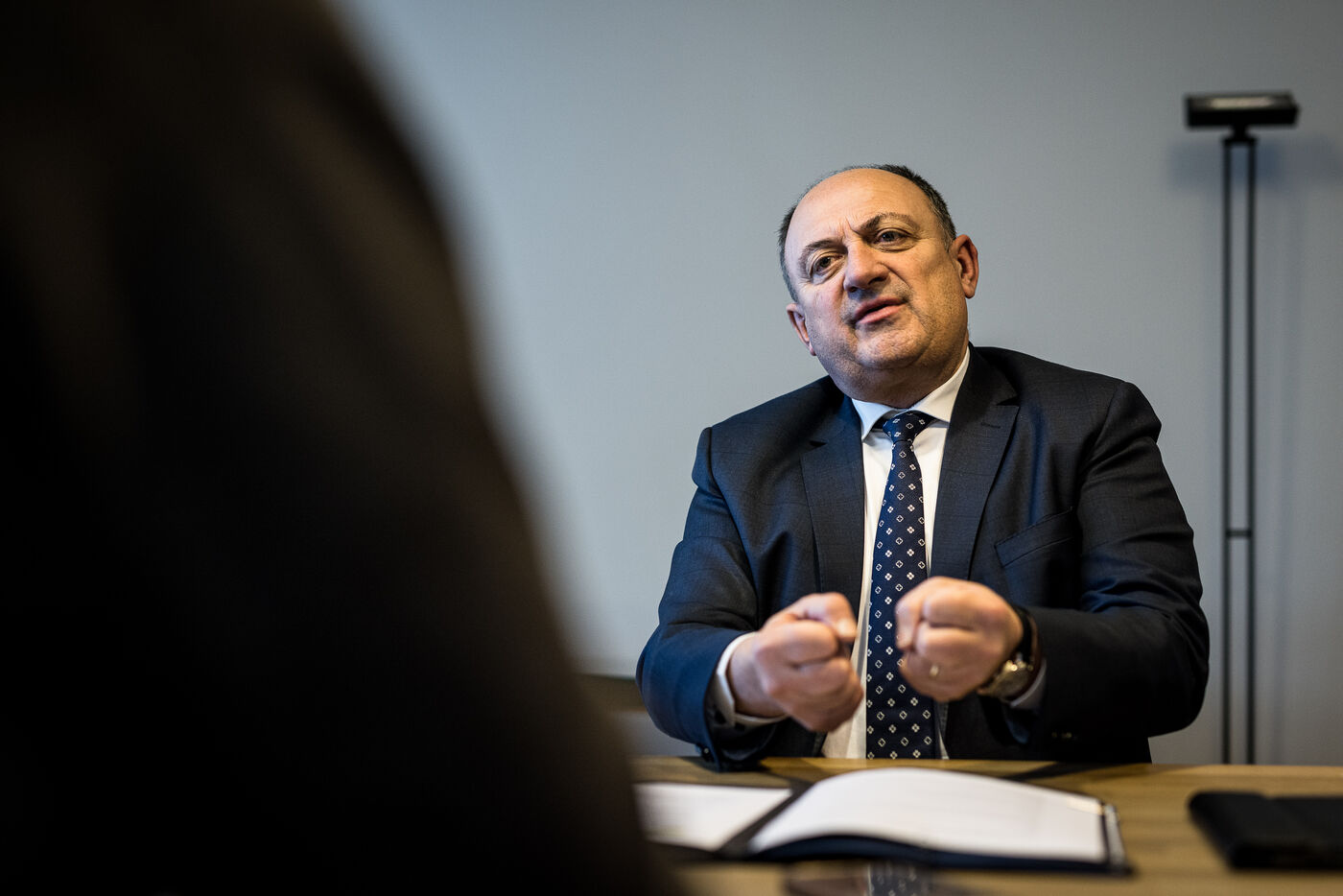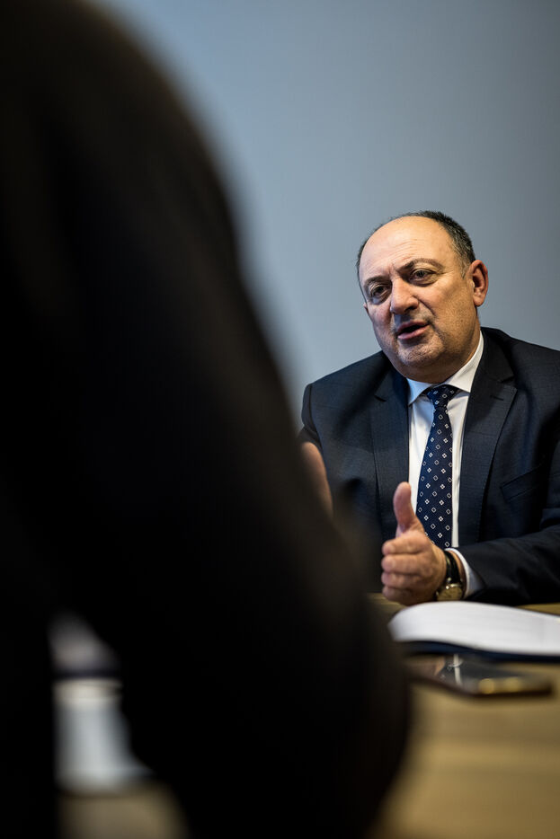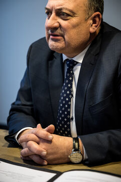 Namur, Belgium. 2023-01-19. Portrait of the Minister of Economy, Willy Borsus. Also vice-president of Wallonia and in charge of research and innovation, digital, agriculture, urban and regional planning.