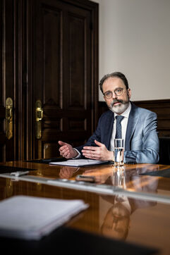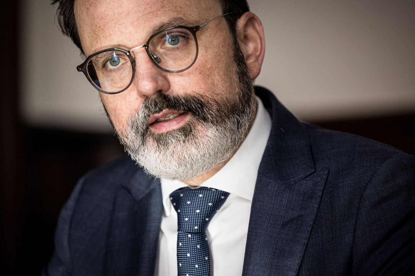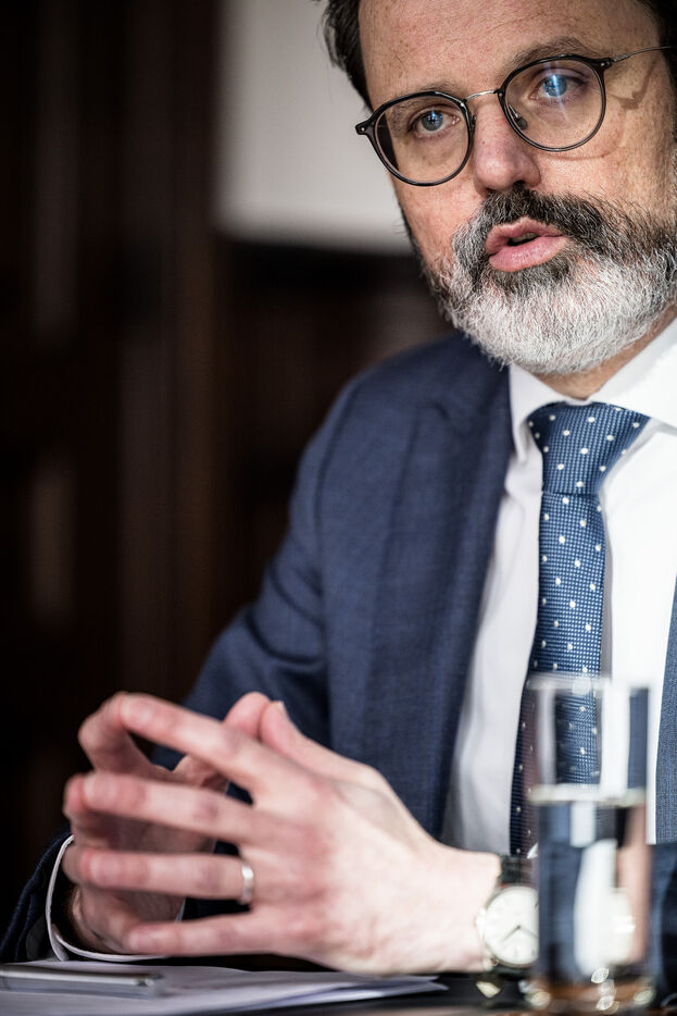 Herstal, Belgium. 2023-02-14. Portrait of Julien Compere, CEO of FN Herstal, a historical weapons company in the Liege region.