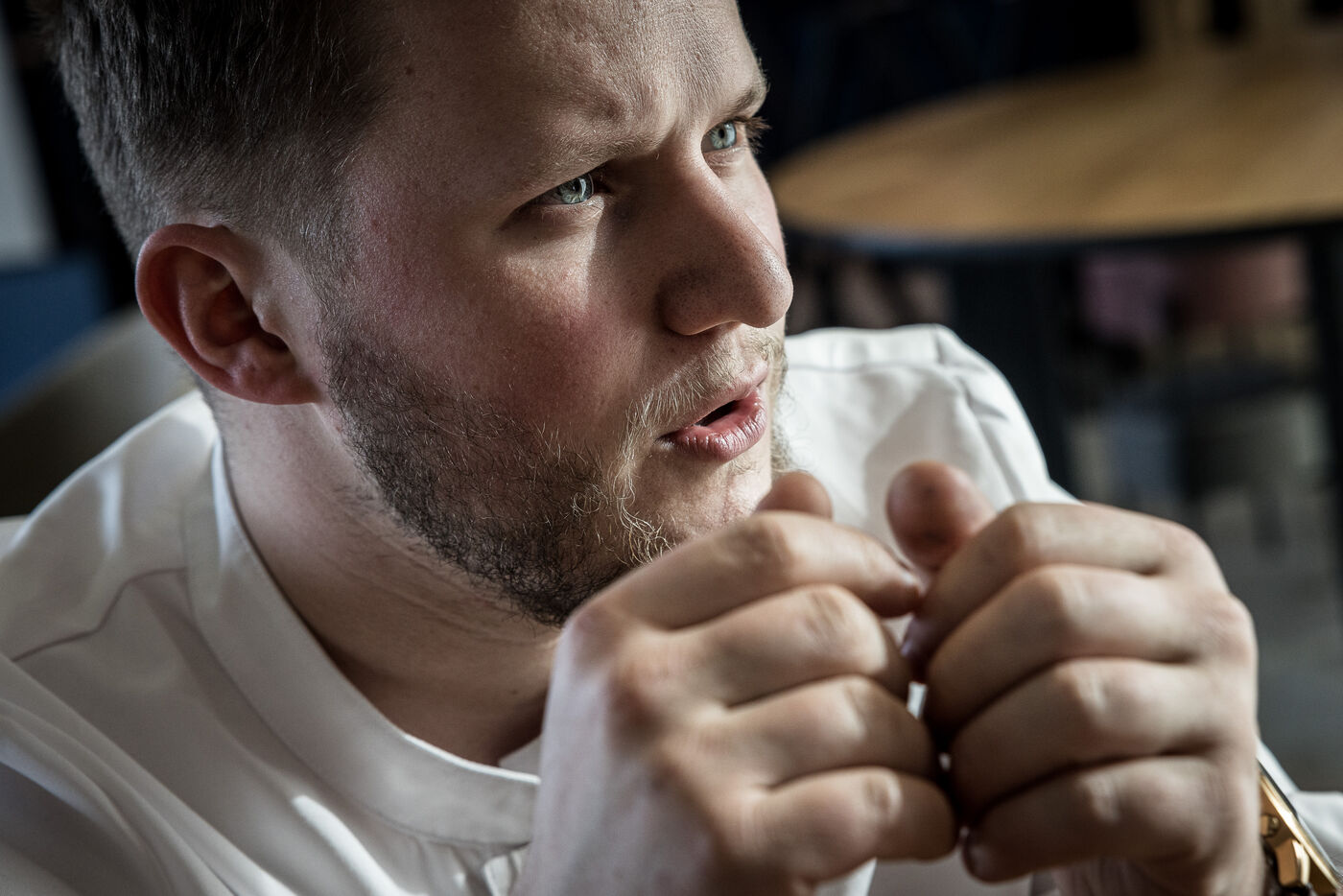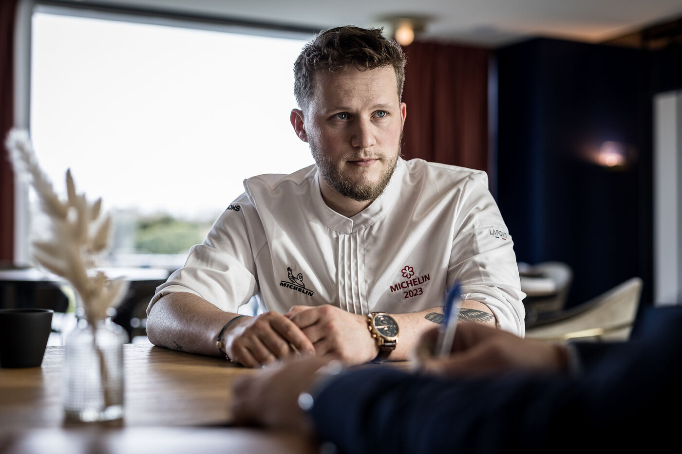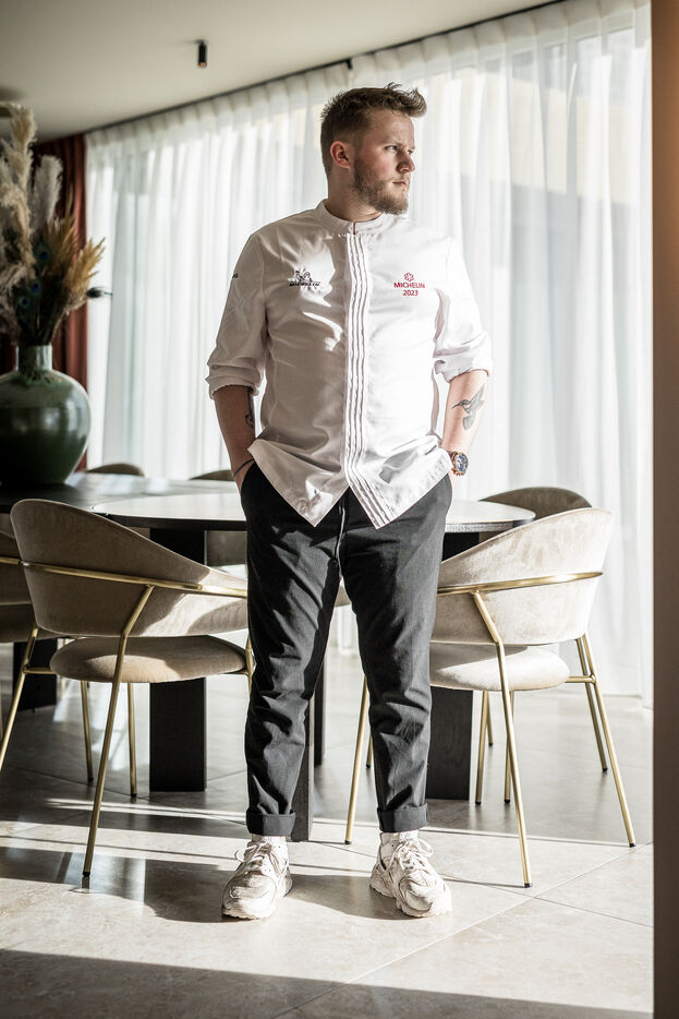 Spa-Francorchamps, Belgium. 2023-03-16. Portrait of Mathieu Vande Velde, chef of the restaurant "Le Roannay", who received a double award in the last edition of the Michelin Guide. After having been designated "Young Chef" of the year, Mathieu Vande Velde also received his first star.