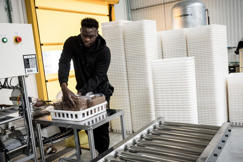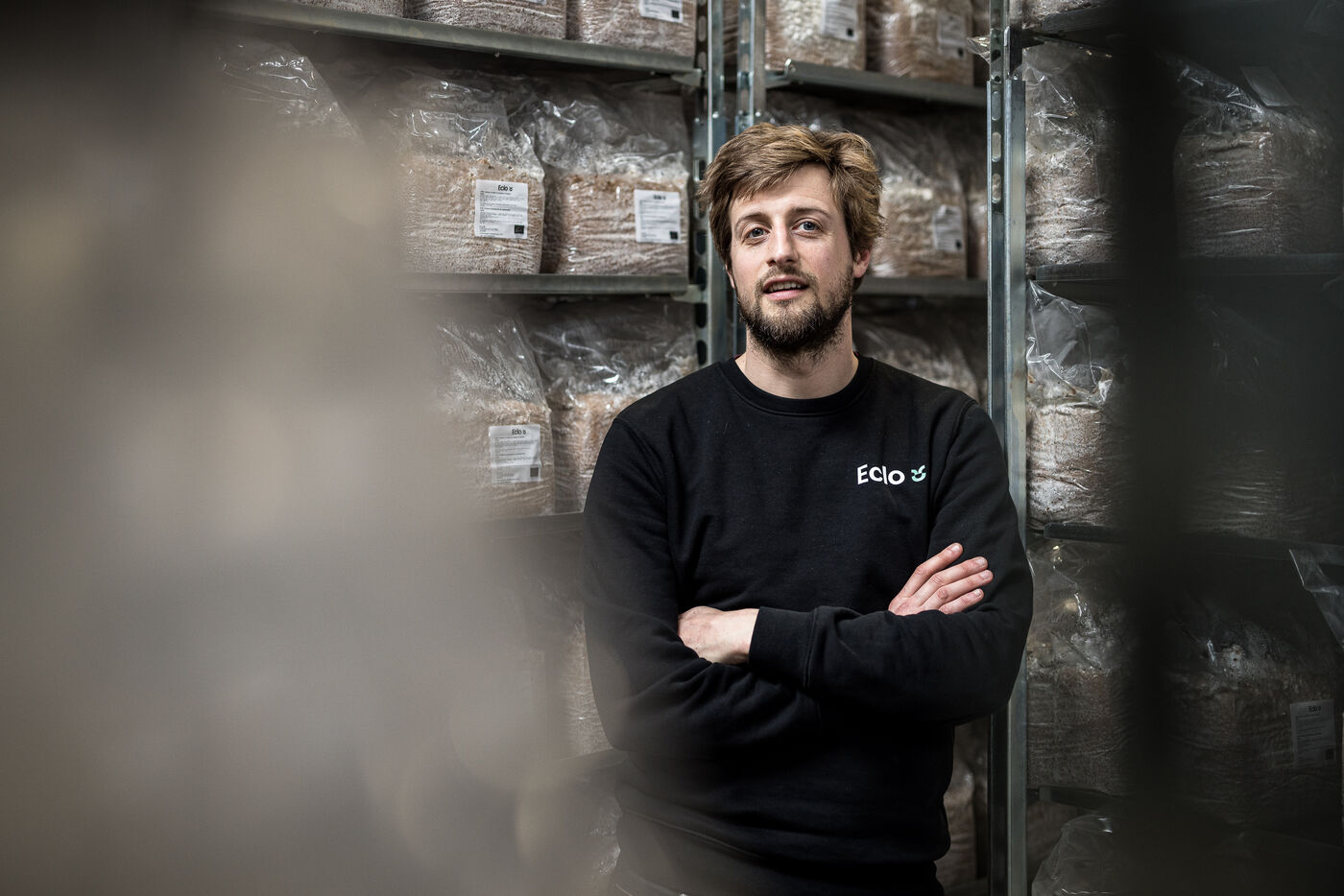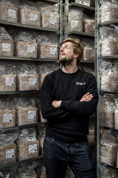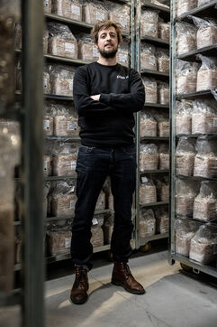 Villers-le-Bouillet, Belgium. 2023-04-24. Portrait of Hadrien Velge, CEO of the company Eclo. Located not far from Liege, it has just opened a factory for the production of substrate for the cultivation of mushrooms of different families.