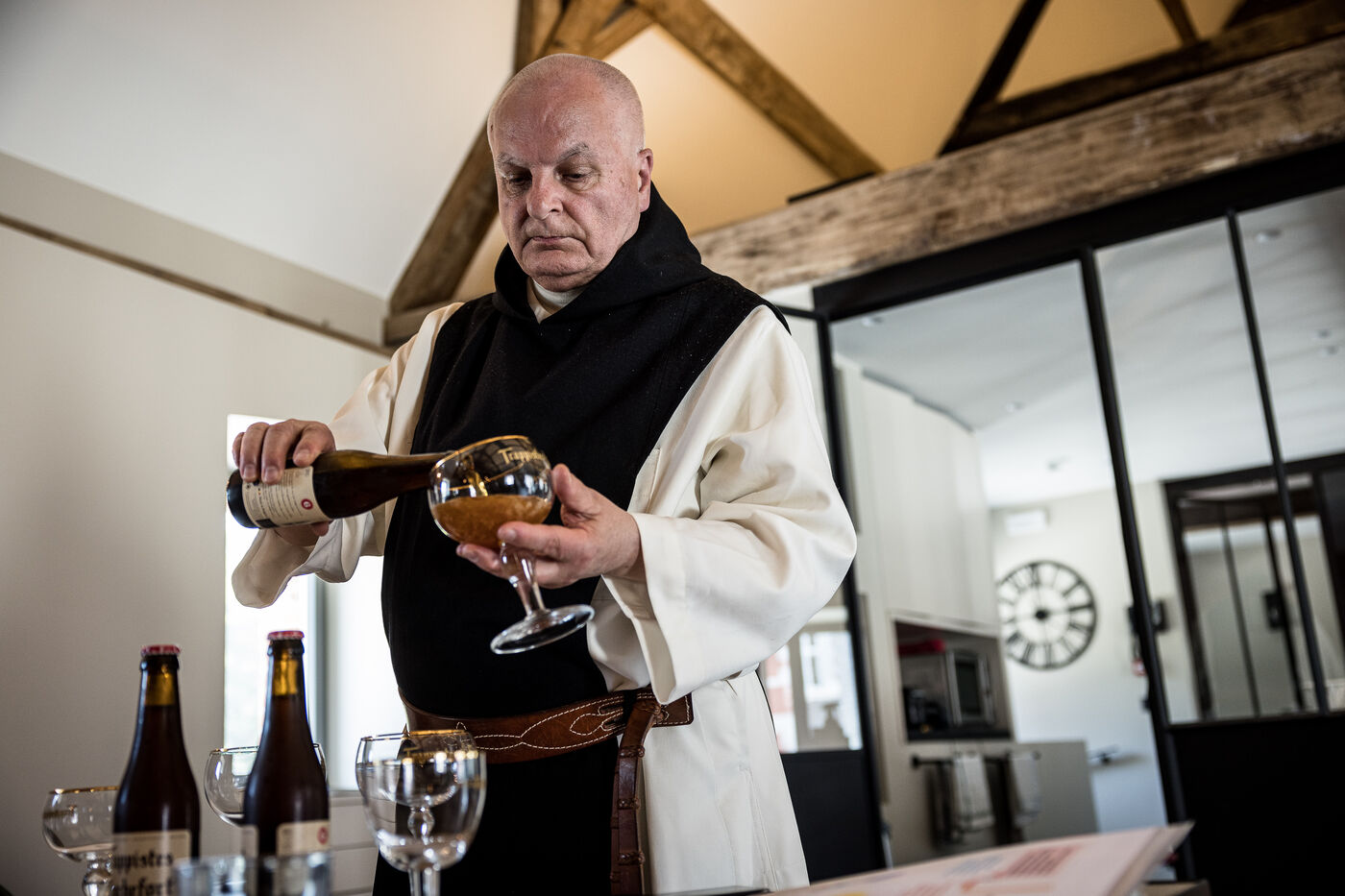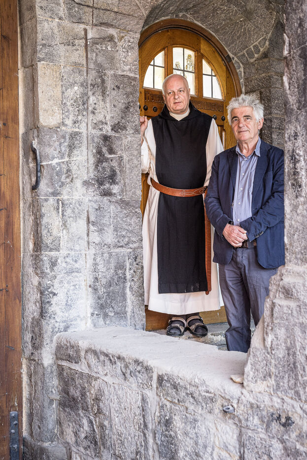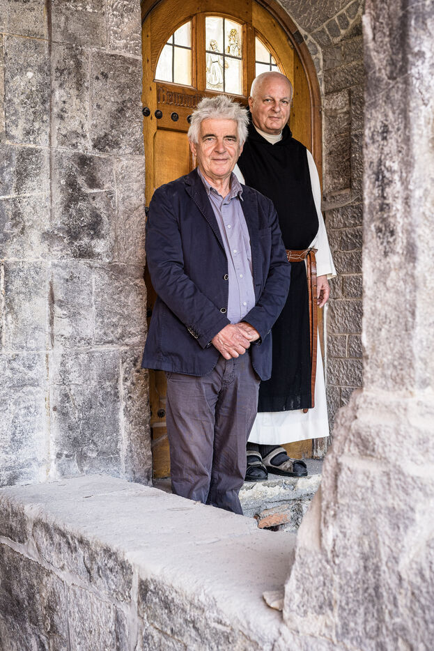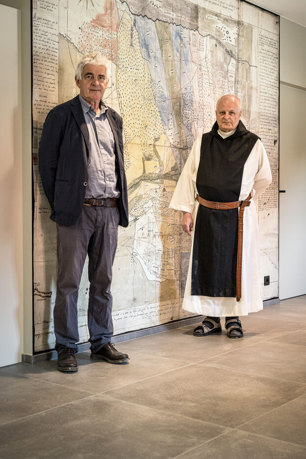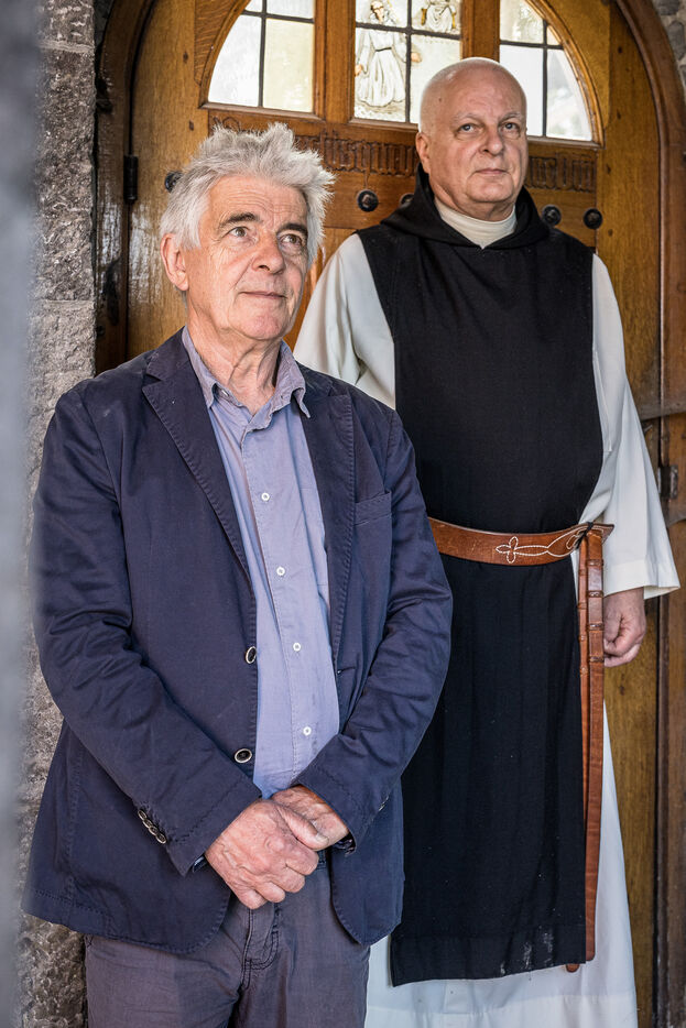 Rochefort, Belgique. 2023-06-06. Portrait de Frere Jean-Paul Wilkin, moine trappiste a l abbaye de Rochefort et Christophe Dedoncker, porte parole.