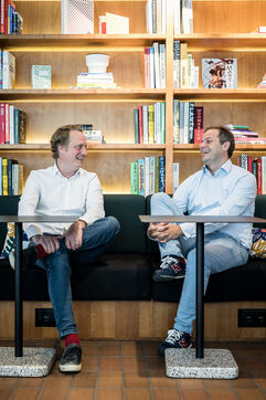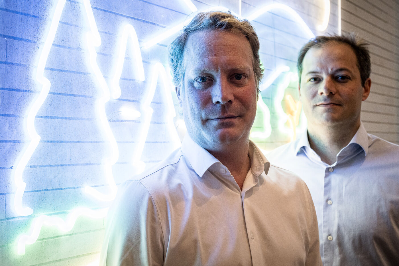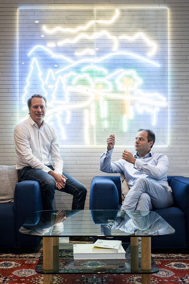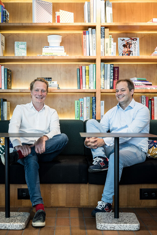 Brussels, Belgium. 2023-07-05. Portrait of Quentin Colmant and Jean-Charles Velge from Qover. The company announces a major capital increase.