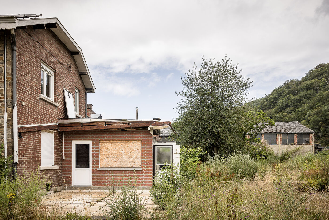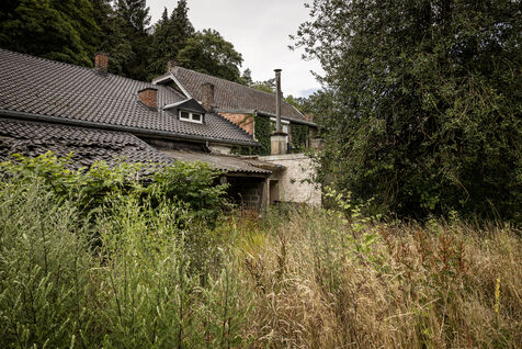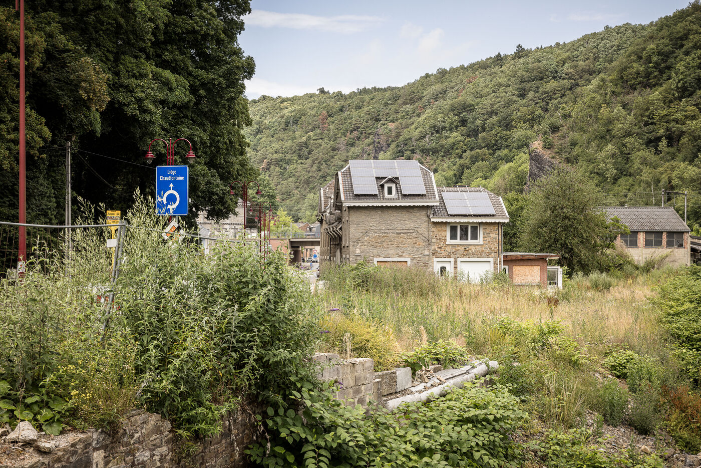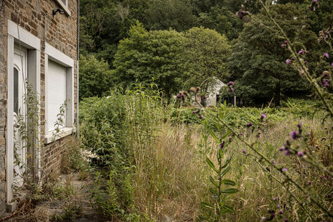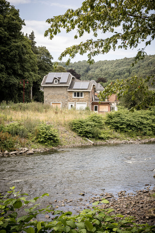 Trooz, Belgique. 2023-07-05. Deux ans apres les inondations qui ont frappe une grande partie de l est de la Belgique, la commune de Trooz a enfin pu racheter les dernieres maisons a detruire. Maisons situees dans le quartier de la Fenderie.