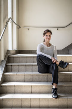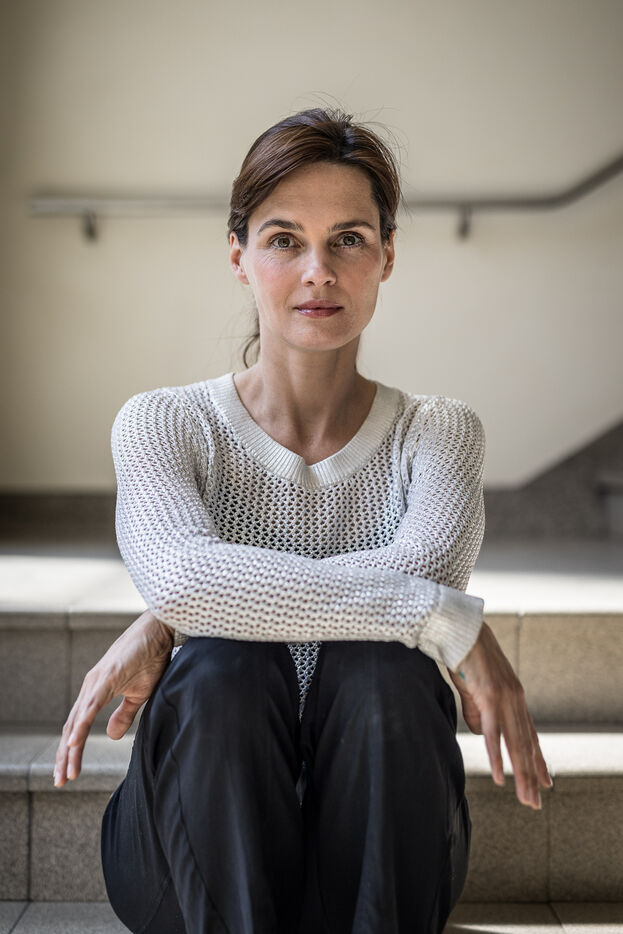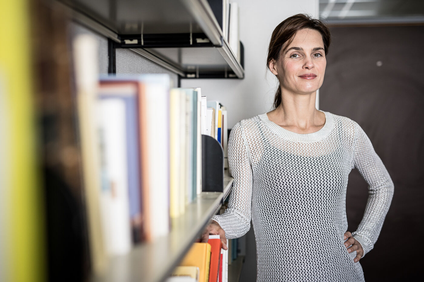 Namur, Belgium. 2023-08-21. Portrait of Caroline de Mulder, Belgian author and novelist at the Faculty of Philosophy and Letters in Namur.