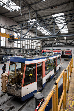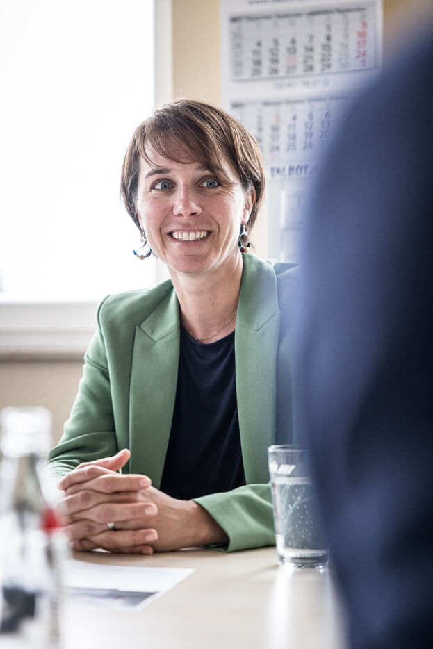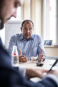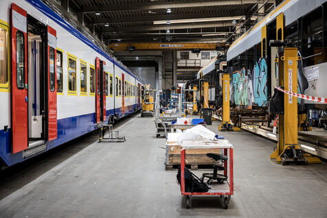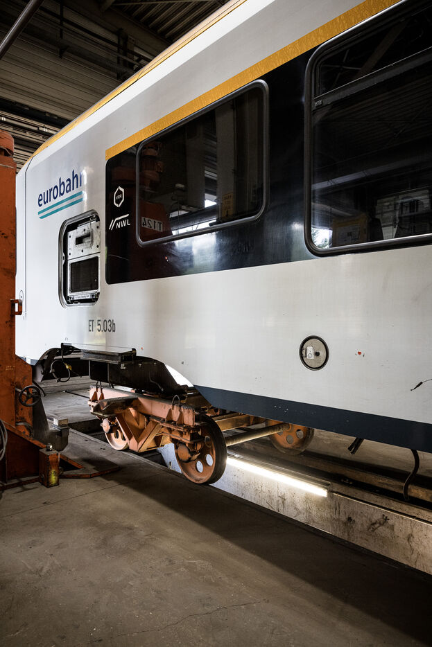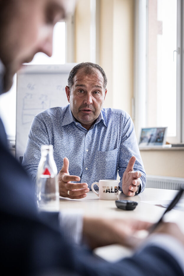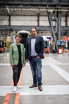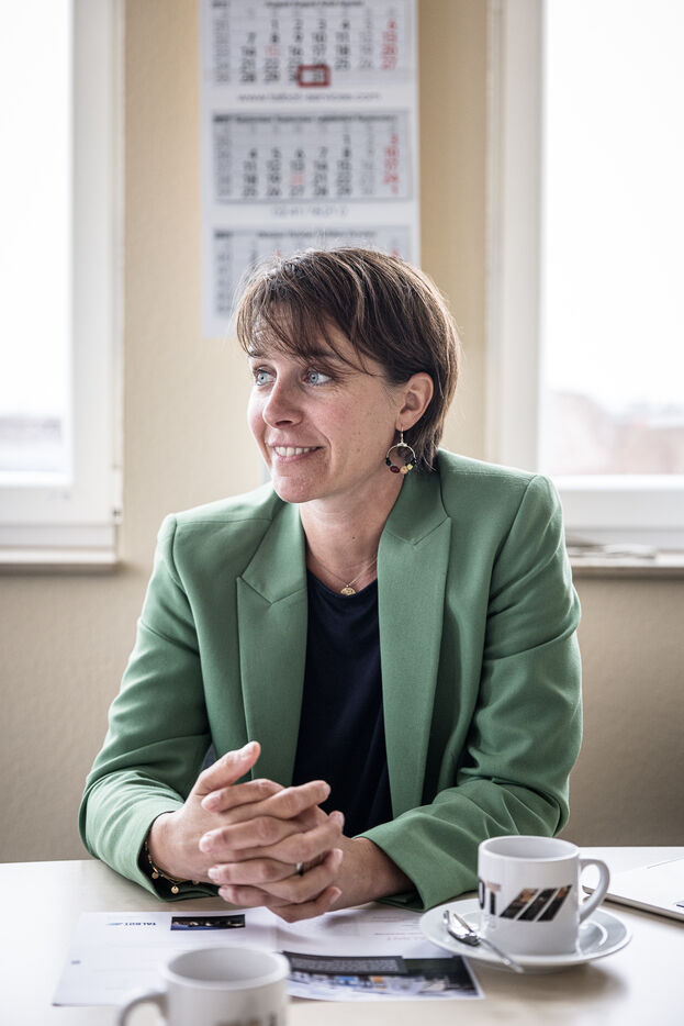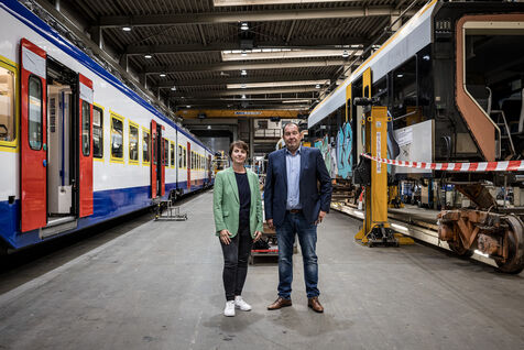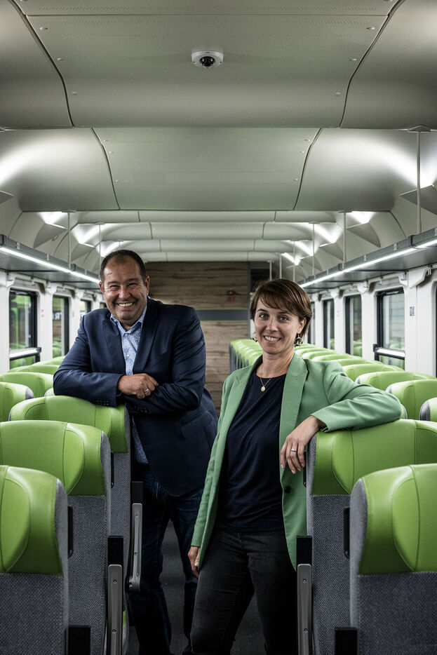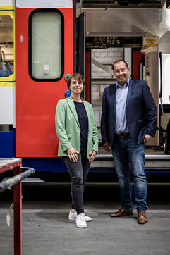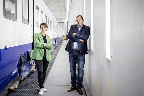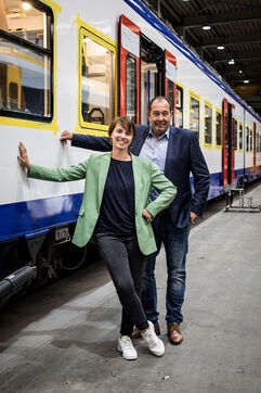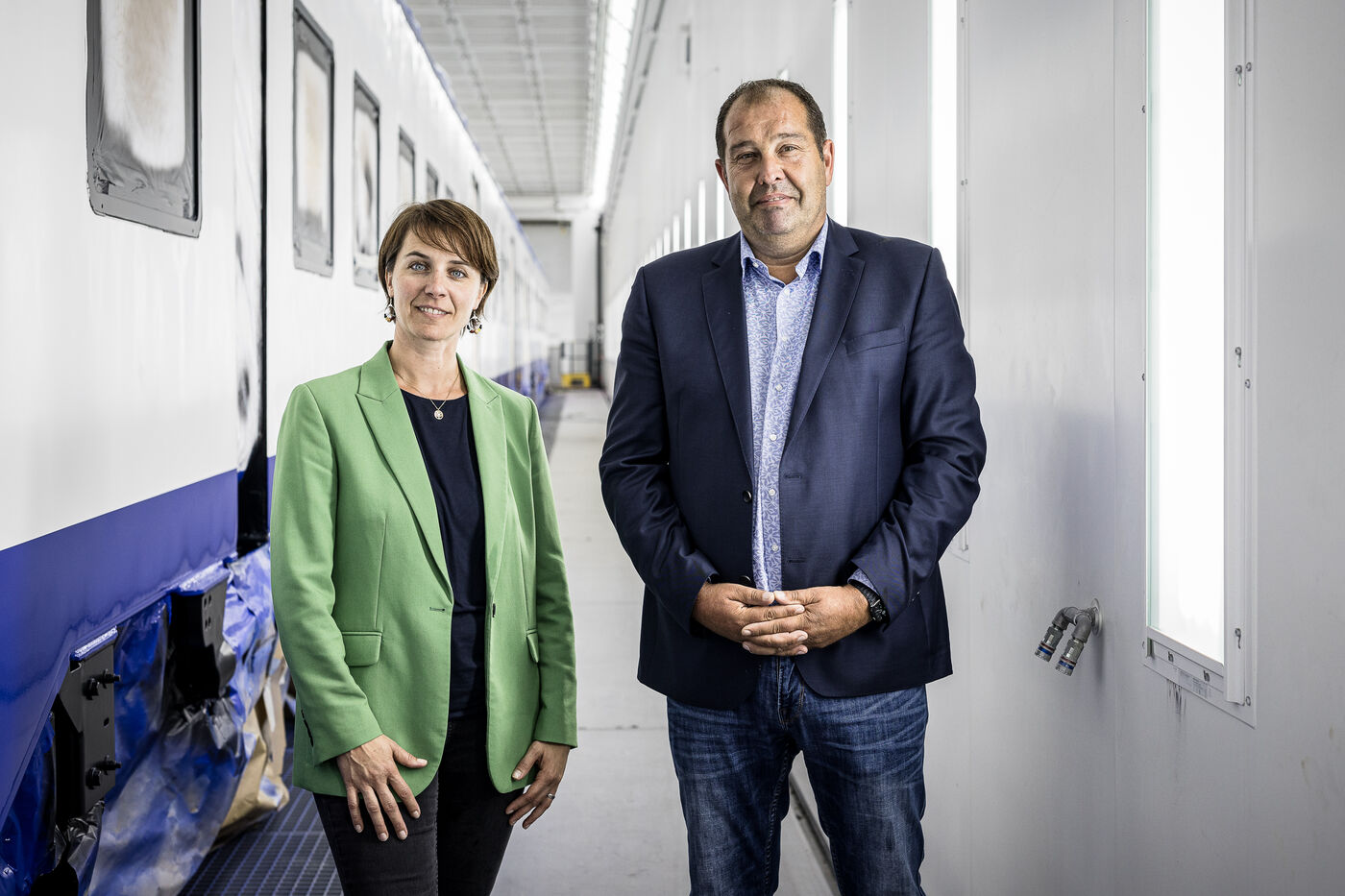 Aachen, Germany. 2023-09-01. Visit to Talbot, a company specializing in services for trains, streetcars, metros and other public transport vehicles. Located in the heart of the city, it offers a large surface area connected to the German railway system. Portrait of Talbot CEO Dirk Reuters and Belgian investor Catherine Noel.