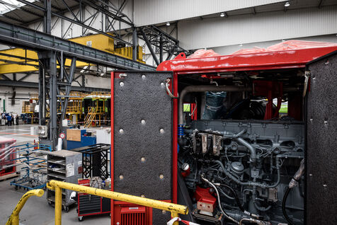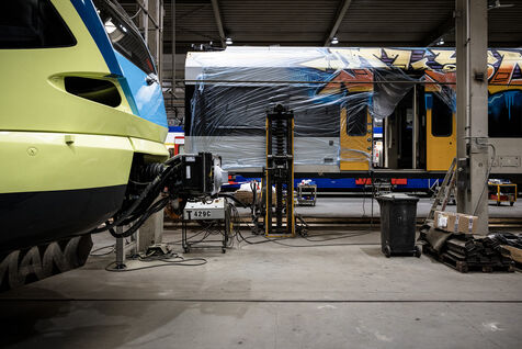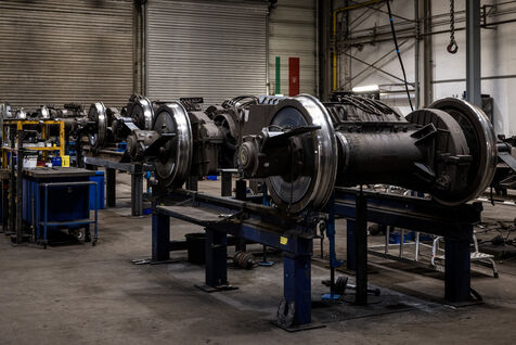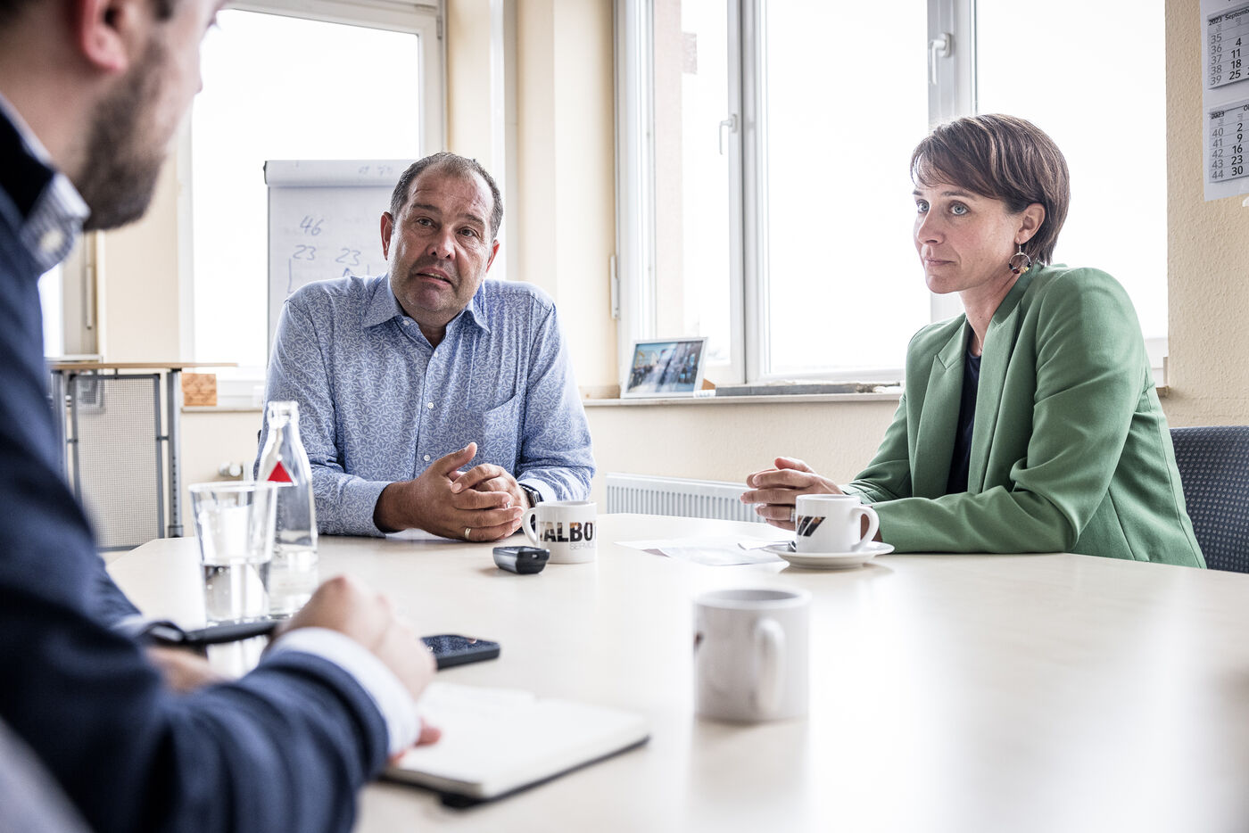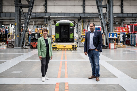 Aachen, Allemagne. 2023-09-01. Visite de l entreprise Talbot, specialisee dans les services destines aux trains, trams, metros et autres vehicules de transport en commun. Situee au coeur de la ville, elle offre une surface importante reliee au systeme ferroviaire allemand. Portrait de Dirk Reuters, CEO de Talbot et Catherine Noel, investisseuse belge.