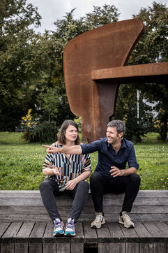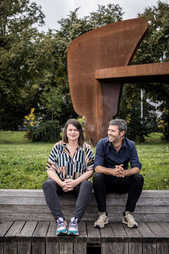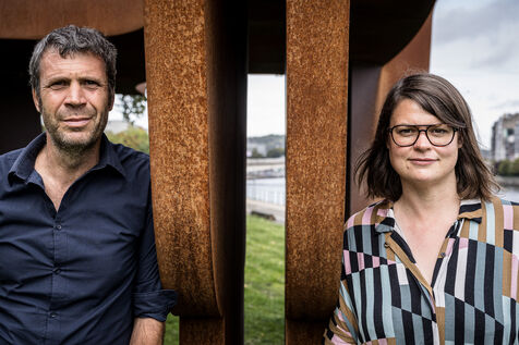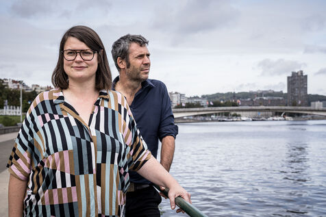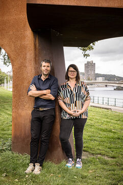 Liege, Belgium. 2023-10.05. Portrait of Sarah Jonet, Cooperative Director, and Hugues Dorzee, Editor-in-Chief of "Imagine Demain Le Monde" magazine.