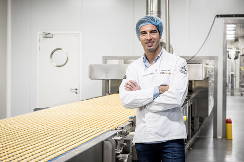Oupeye, Belgium. 2023-11-03. Portrait of Michael Labro, CEO of PM Sweet, specializing in macaroons.