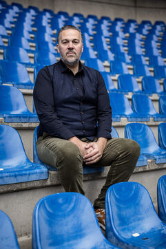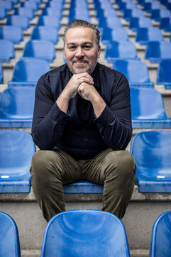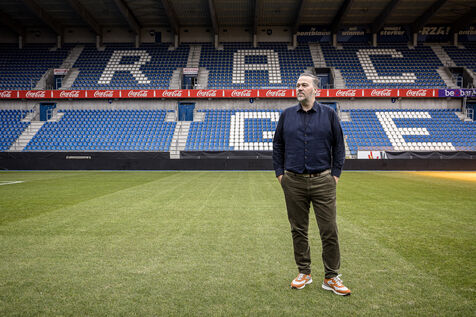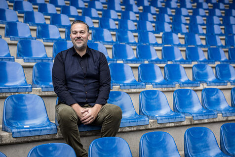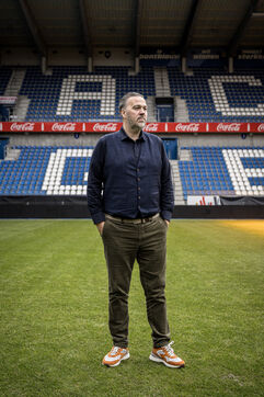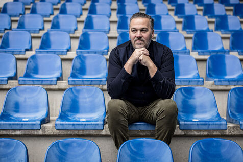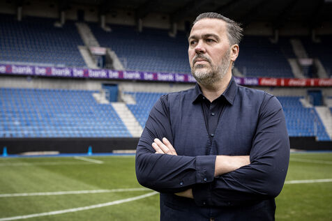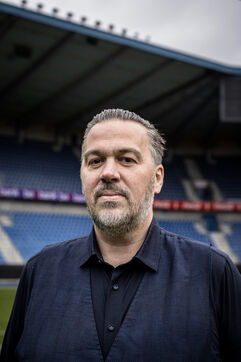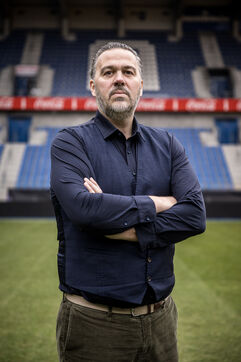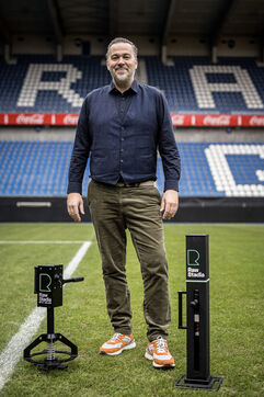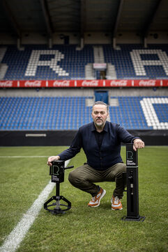 Genk, Belgium. 2023-12-11. Portrait of Jan Stryckers, CEO of Raw Stadia. The company has developed a technology capable of analyzing the condition of sports fields in order to improve athletes' performance. Raw Stadia increases its capital by 1.5 million euros. Photograph by Valentin Bianchi / Hans Lucas