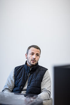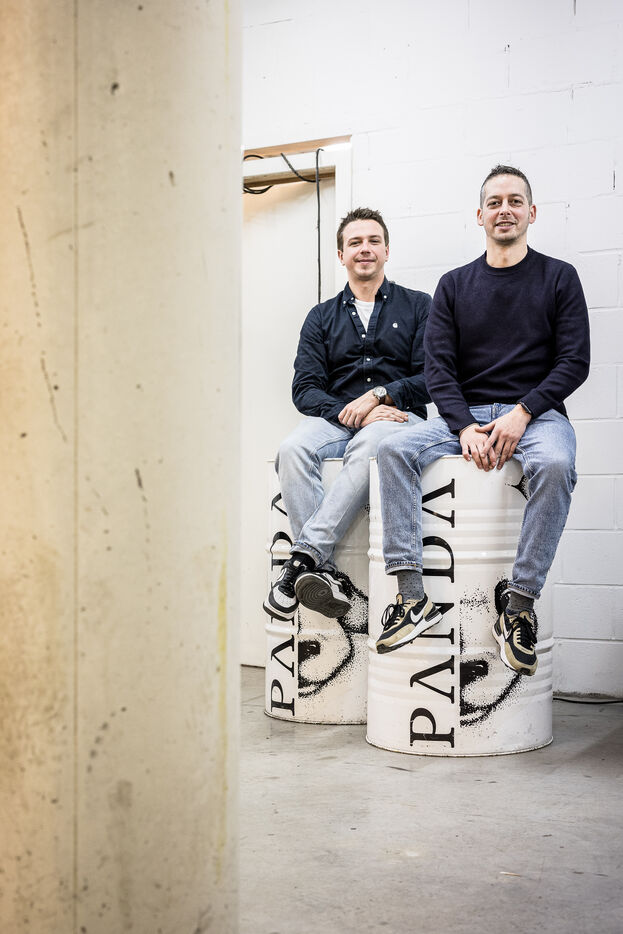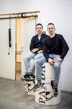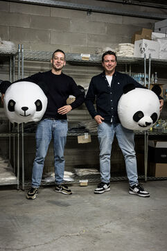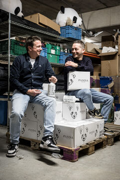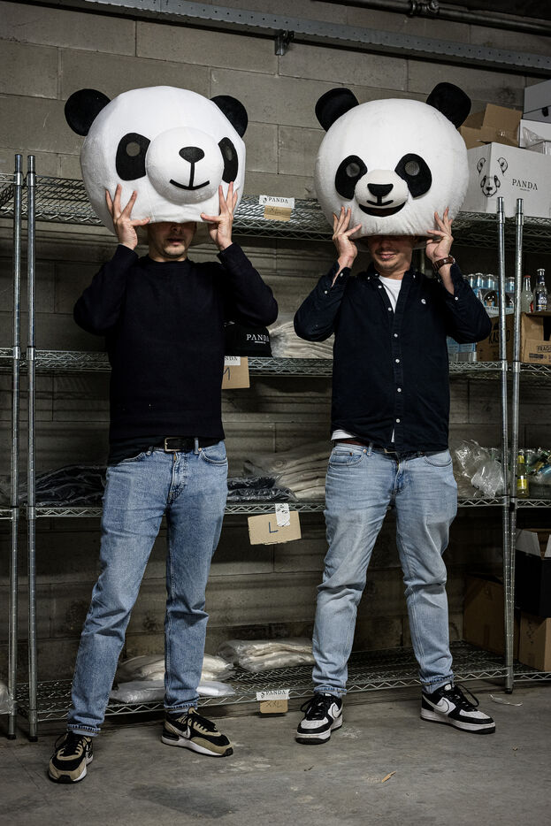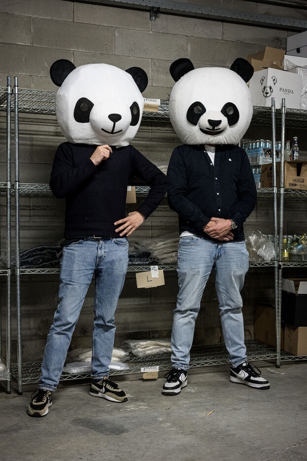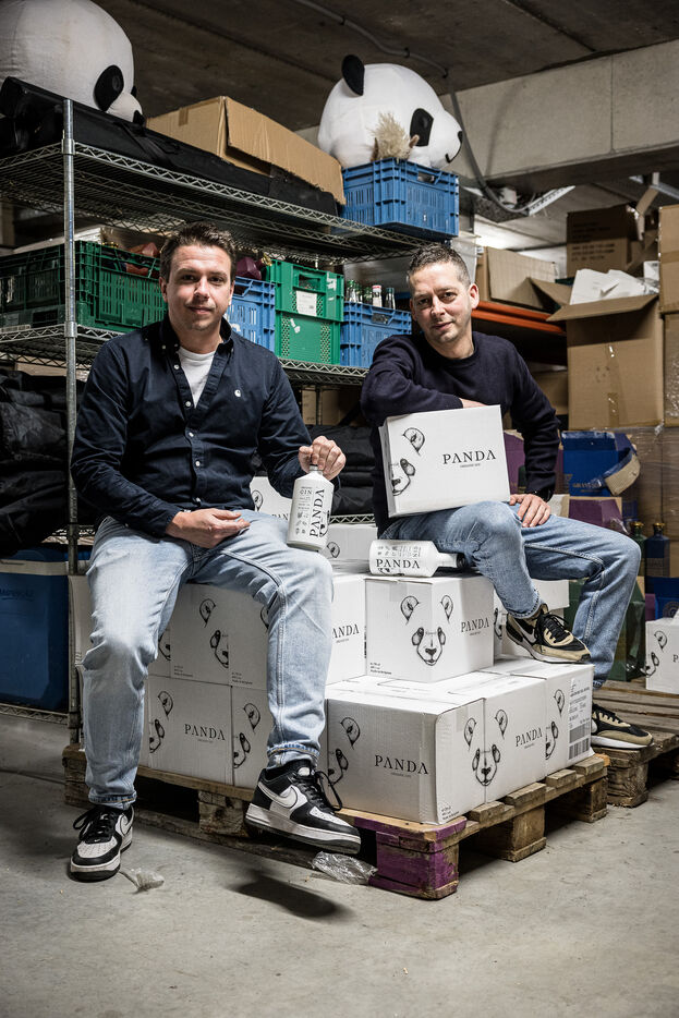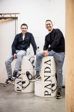 Waterloo, Belgium. 2023-12-27. Meet the co-founders of Panda Gin, Jeremy Chauvaux and Sonny Mortiaux. The company is growing and aims to develop exports as much as possible. Photograph by Valentin Bianchi / Hans Lucas