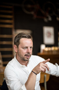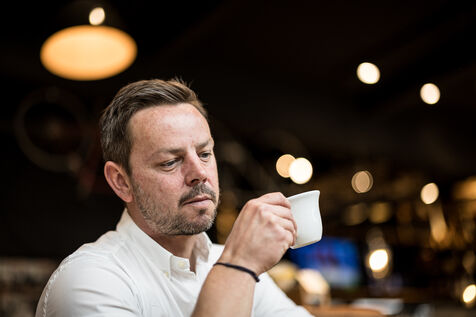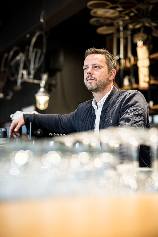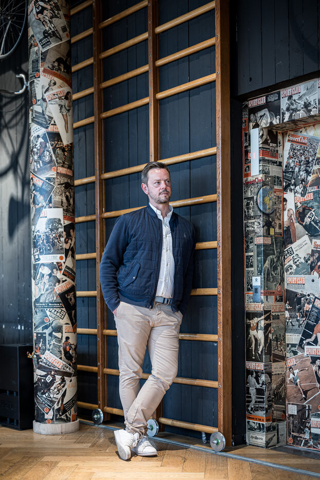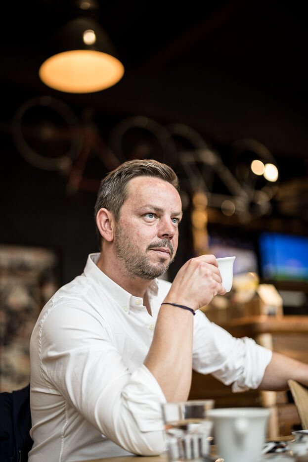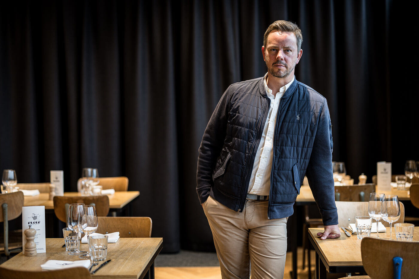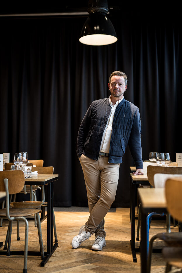 Woluwe-Saint-Pierre, Belgium. 2024-02-02. Portrait of Mathieu Leonard, President of the Federation Horeca Bruxelles. Photograph by Valentin Bianchi / Hans Lucas