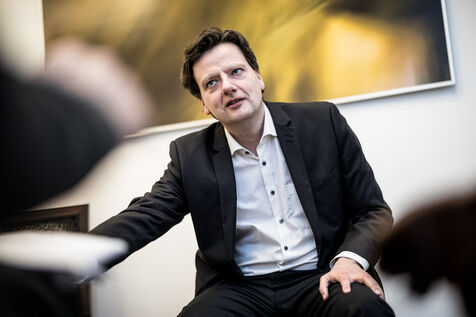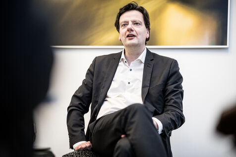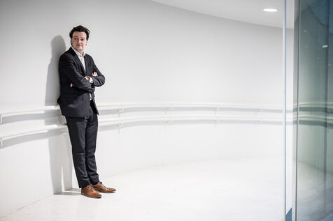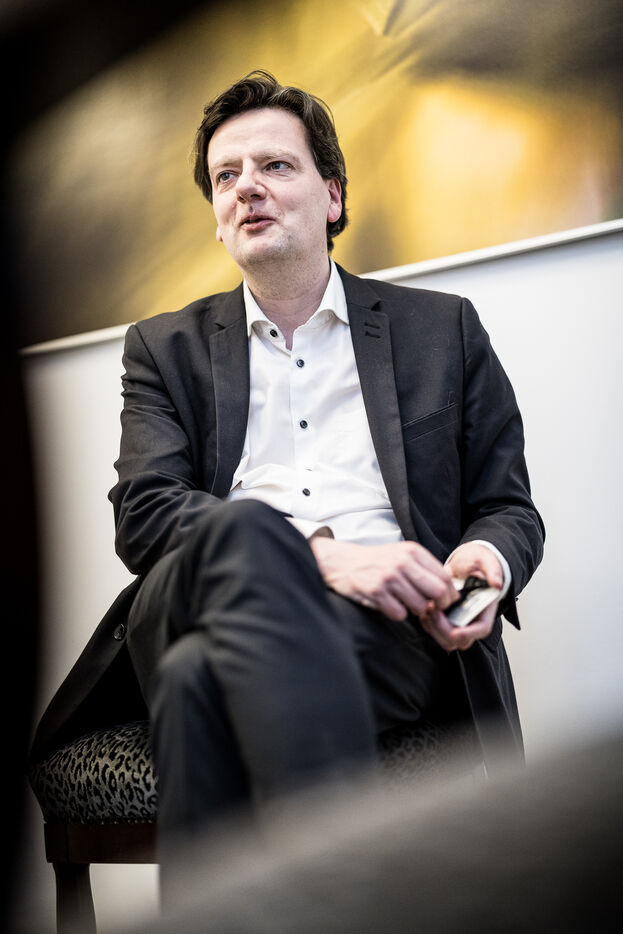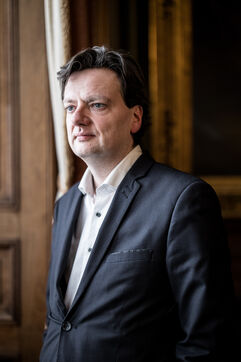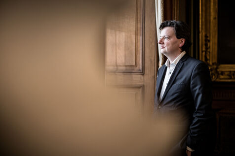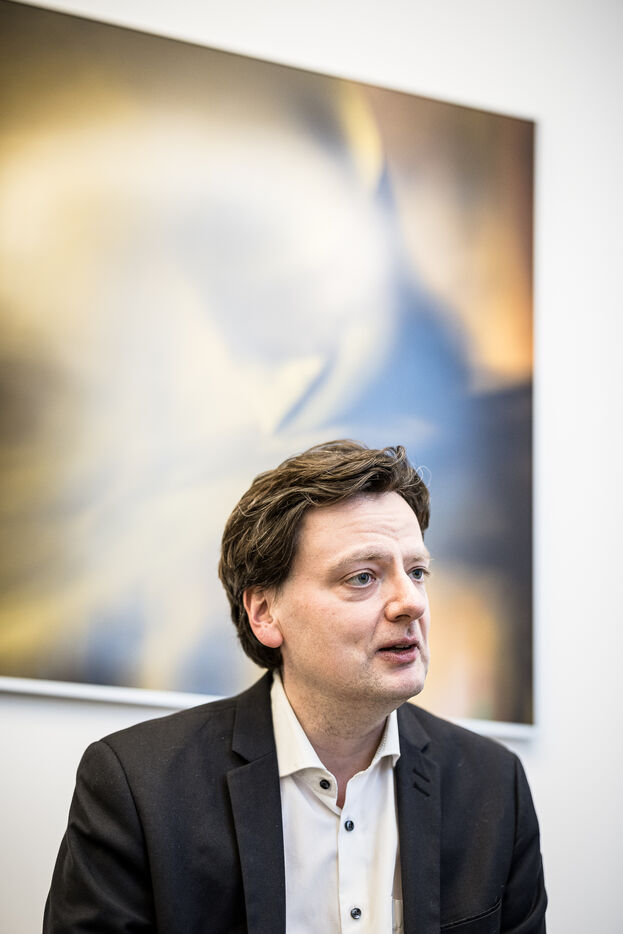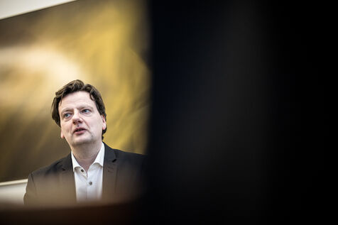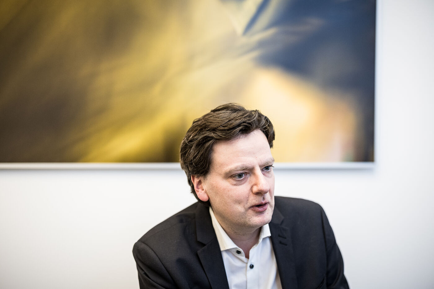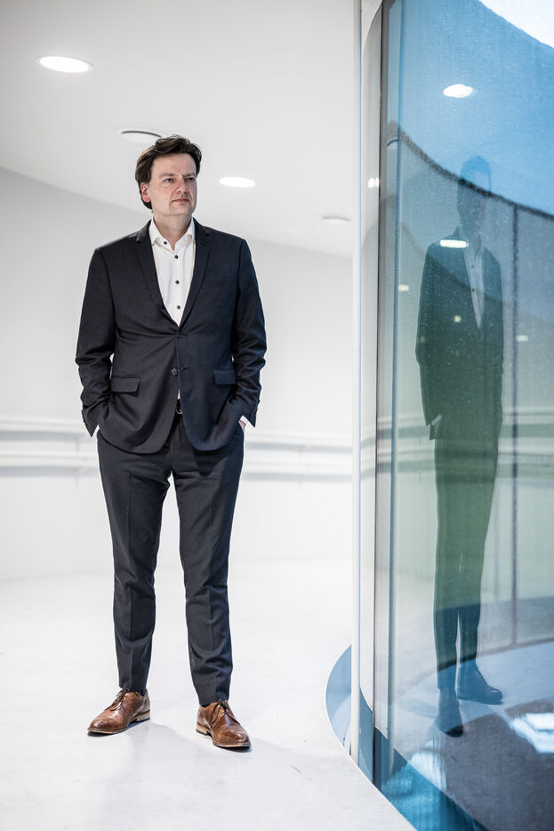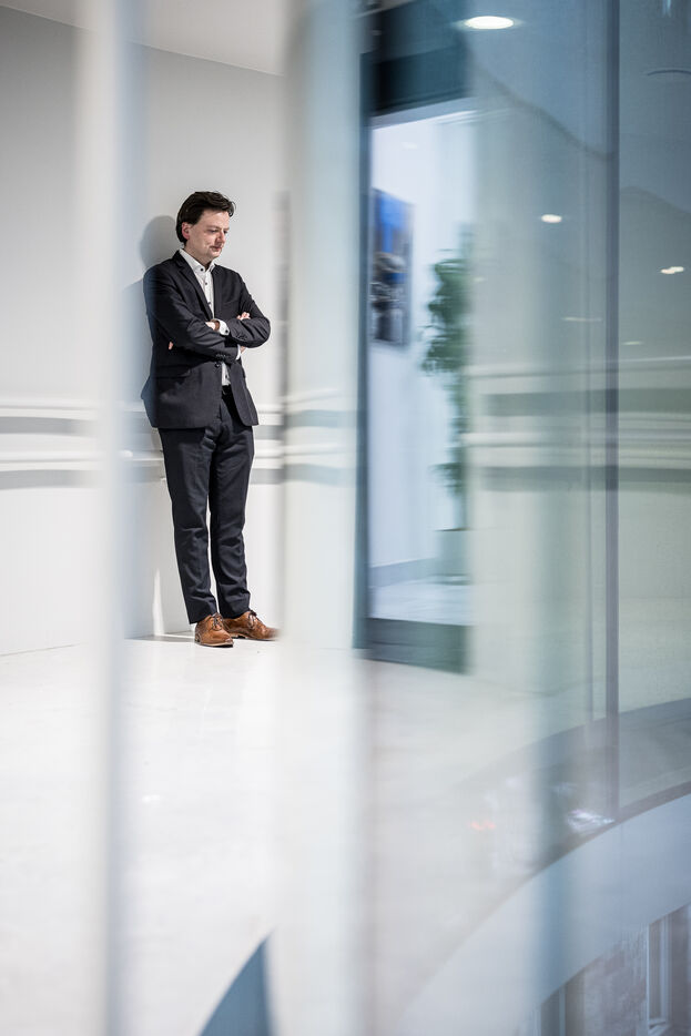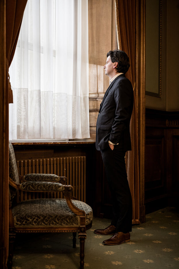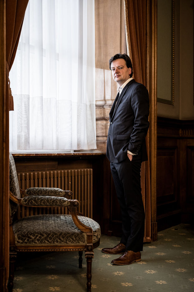 Brussels, Belgium. 2024-02-22. Portrait of Francois De Smet, President of DeFI and federal deputy in the House of Representatives. Photograph by Valentin Bianchi / Hans Lucas