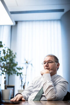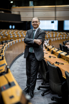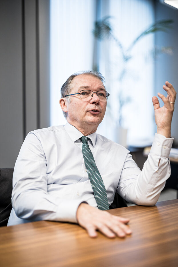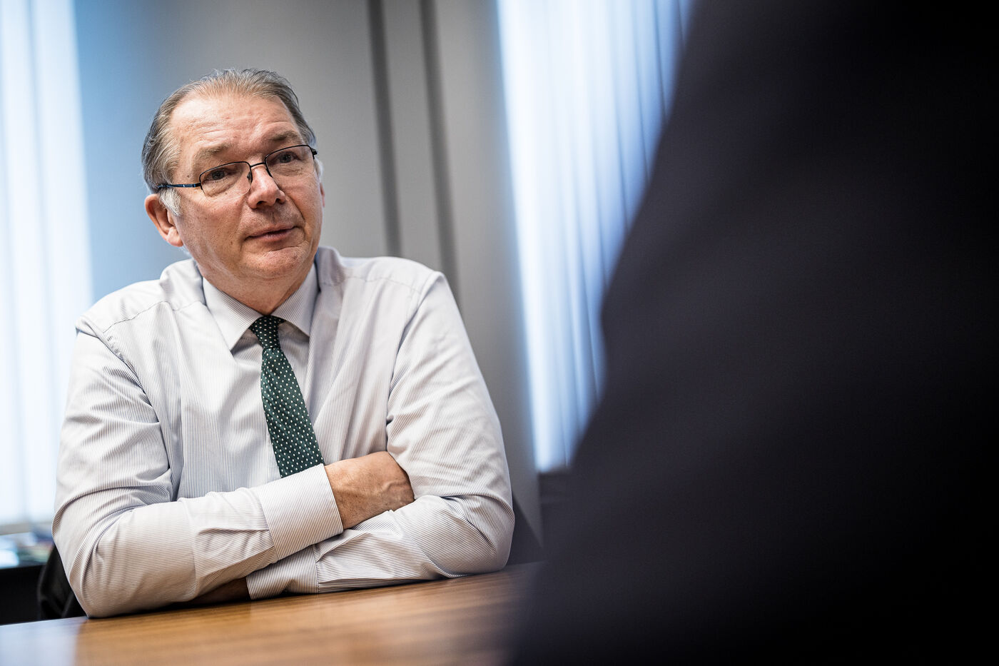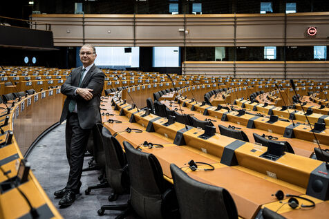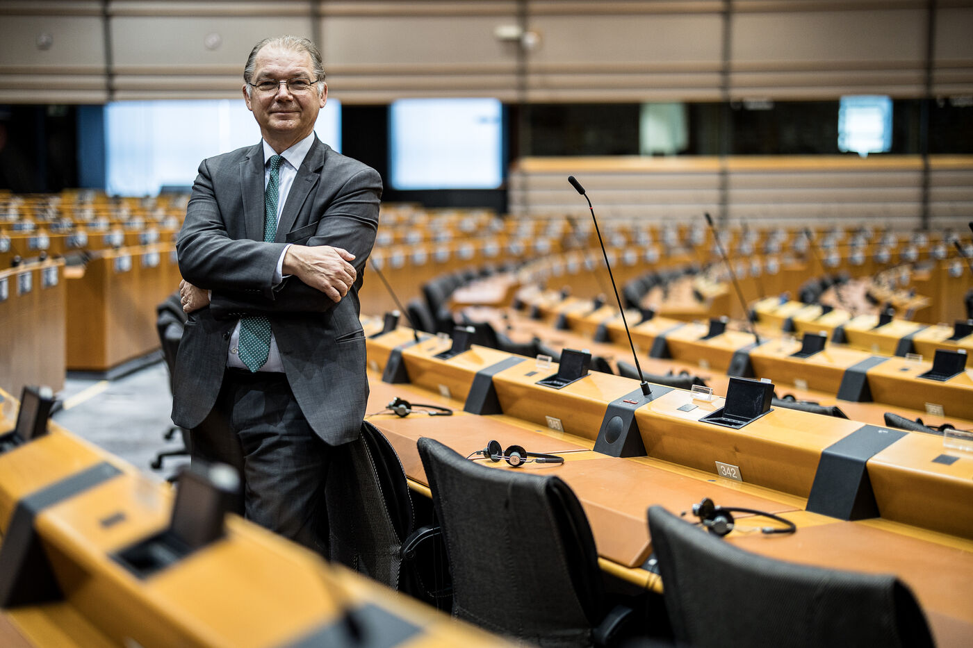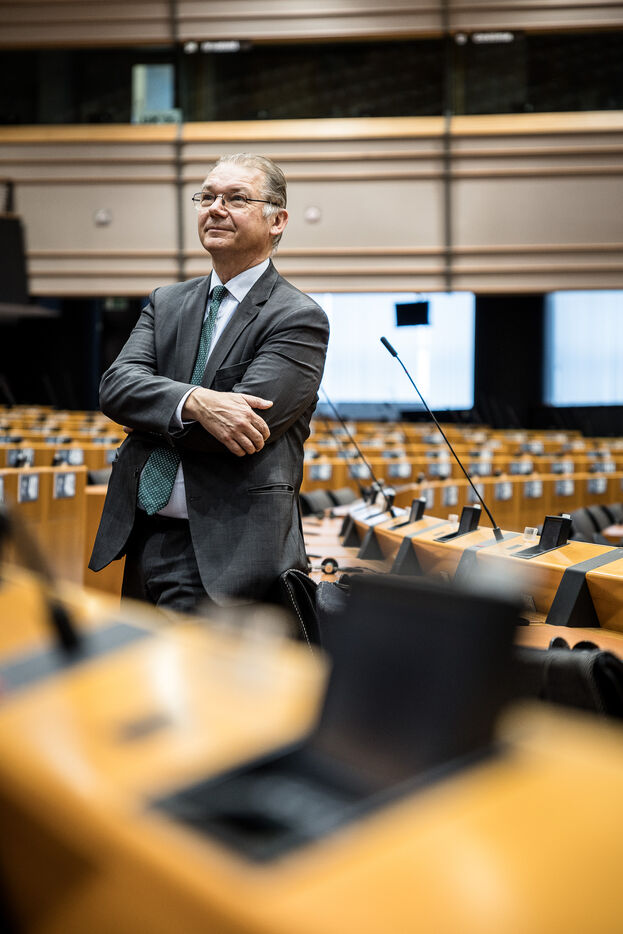 Brussels, Belgium. 2024-03-05. Portrait of Philippe Lamberts, European deputy and member of the Belgian Ecolo Party. Photograph by Valentin Bianchi / Hans Lucas