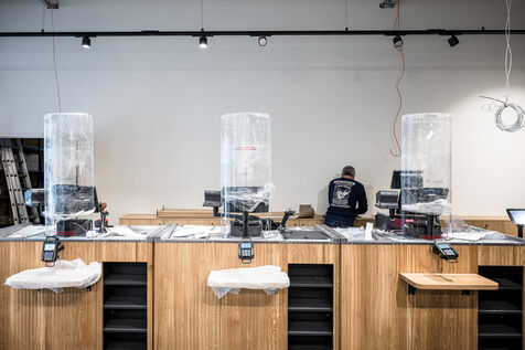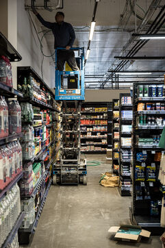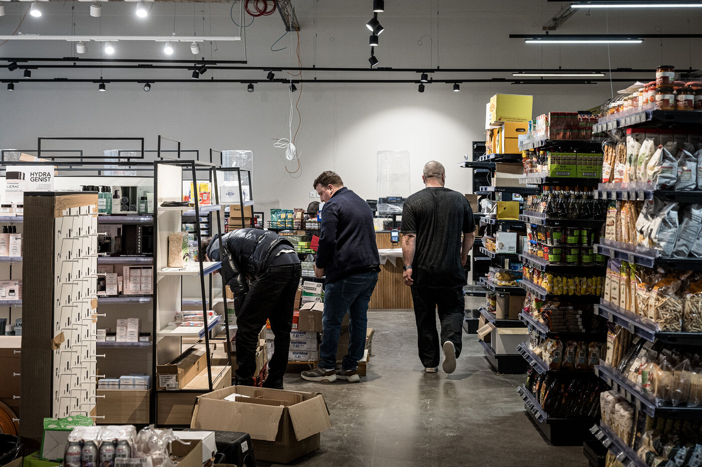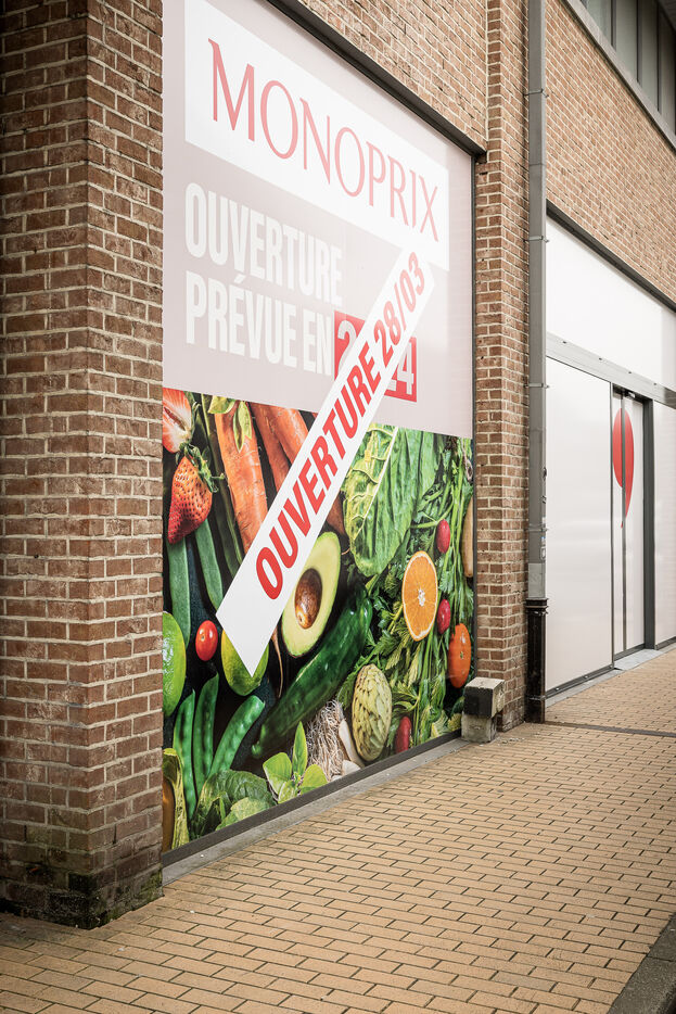 Waterloo, Belgique. 2024-03-21. Le premier magasin Monoprix de Belgique ouvrira le 28 Mars prochain, les travaux avancent rapidement pour que tout soit pret pour l ouverture prochaine. Photographie de Valentin Bianchi / Hans Lucas