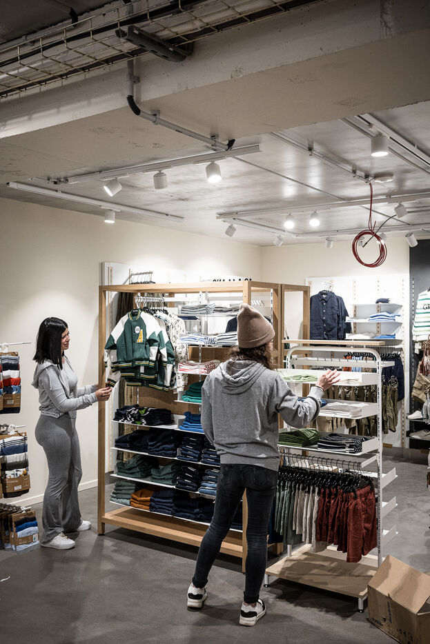 Waterloo, Belgium. 2024-03-21. Belgium's first Monoprix store will open on March 28, with work progressing rapidly to ensure that everything is ready for the opening. Photograph by Valentin Bianchi / Hans Lucas