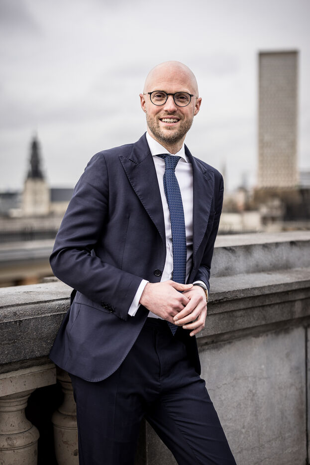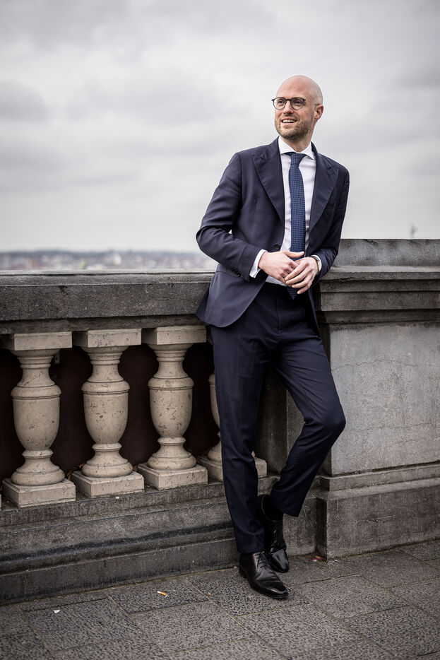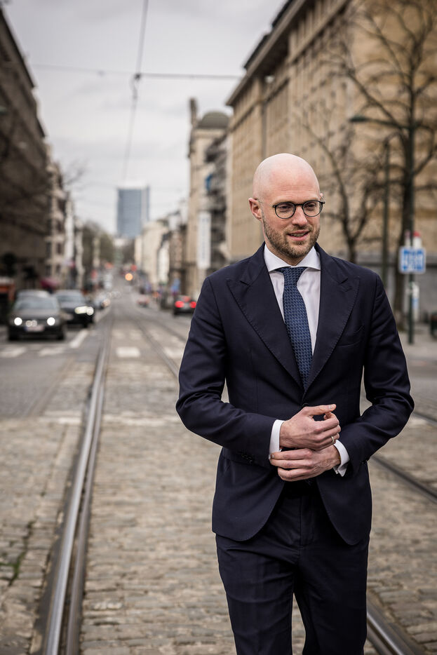 Brussels, Belgium. 2024-03-21. Portrait of David Leisterh, Belgian politician, president of the Brussels branch of the Mouvement Réformateur, MR. Member of the Brussels Regional Parliament and President of the Watermael-Boitsfort CPAS Photograph by Valentin Bianchi / Hans Lucas