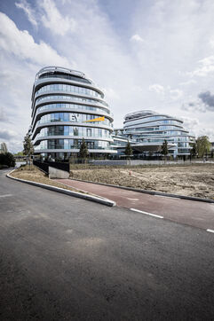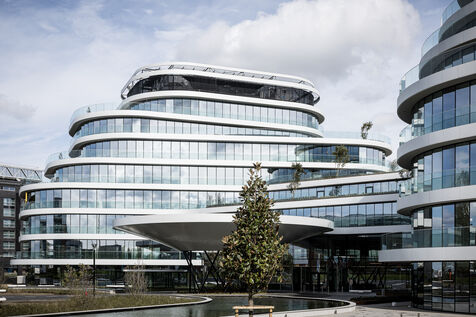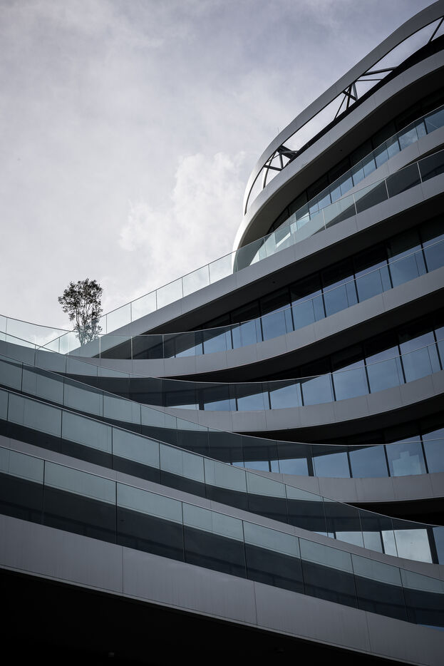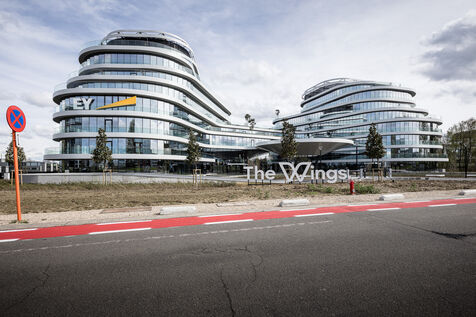 Diegem, Belgium. 2024-04-05. Office building and hotel, The Wings, by Ghelamco. Photograph by Valentin Bianchi / Hans Lucas