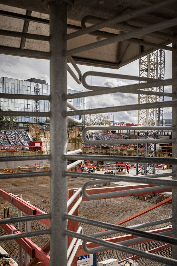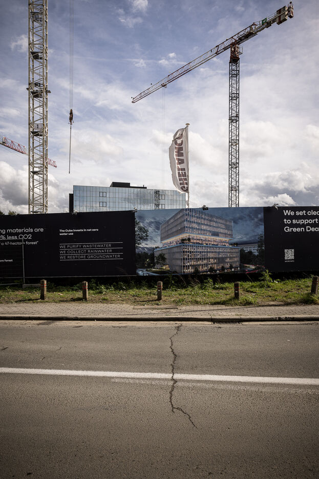 Machelen, Belgium. 2024-04-05. Building under construction, The Cube, by Ghelamco. Photograph by Valentin Bianchi / Hans Lucas