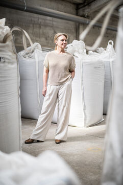 Portrait of Isabelle Coupienne, CEO and founder of Land Farm & Men and the Graines de Curieux brand in Marchovelette, Belgium, 11 July 2024.