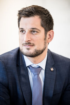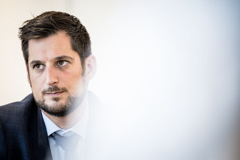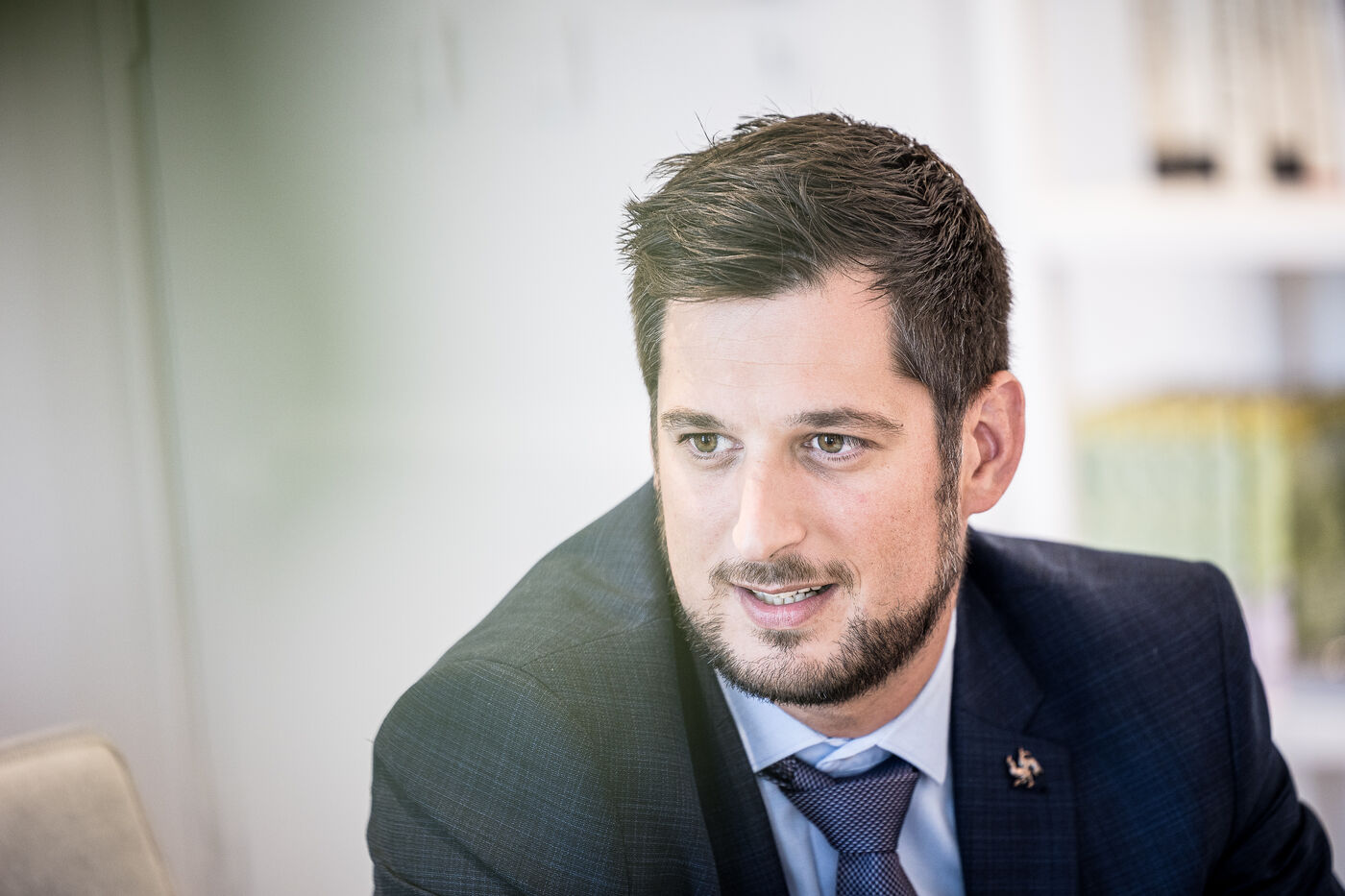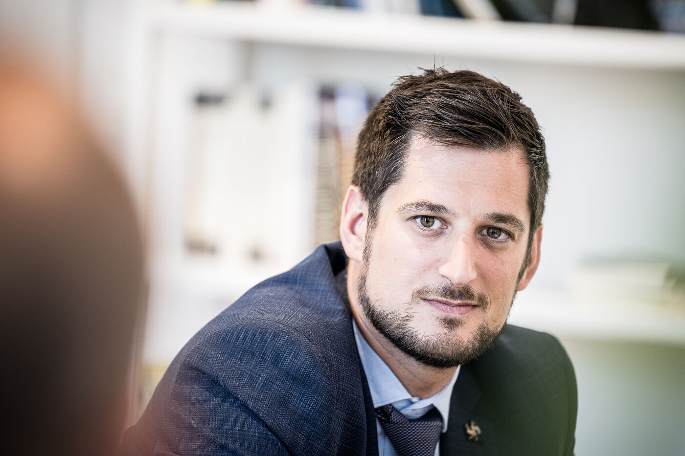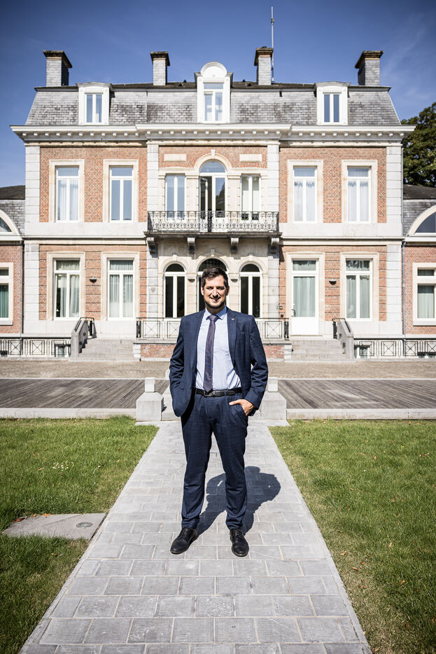 Portrait of Adrien Dolimont, MR, Minister President of the Walloon Government in Namur, Belgium, 29 August 2024.