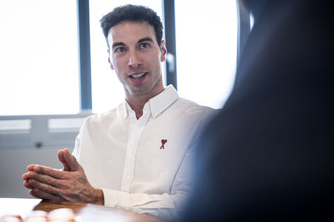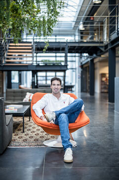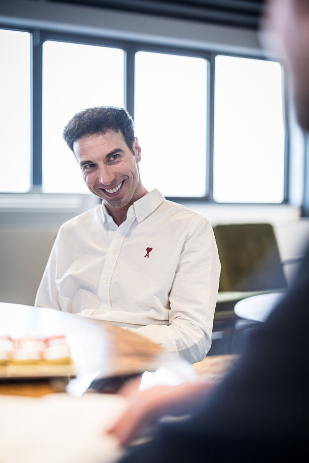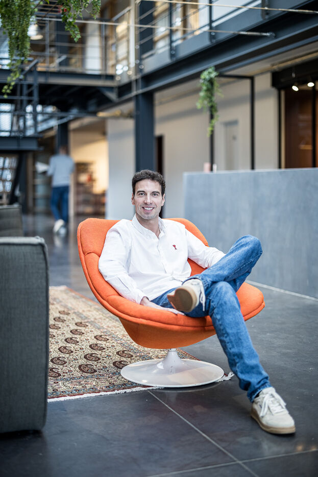 Portrait de Michael Labro, Fondateur et CEO de PM Sweet, entreprise specialisee dans la production de macarons a Dison, Belgique, 15 Janvier 2025.