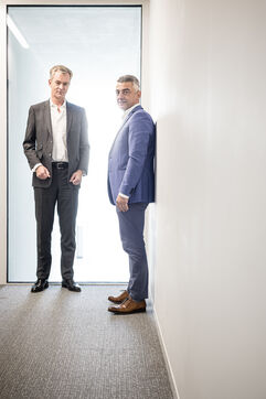 Portrait of Houtai Choumane and Francois Blondel, CEO of Kiomed Pharma in Liege, Belgium, March 27th 2025.