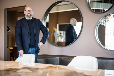 Portrait of Sebastien Mailleux, Administrator of Meubles Mailleux in Neupre, Belgium, April 2, 2025.
