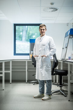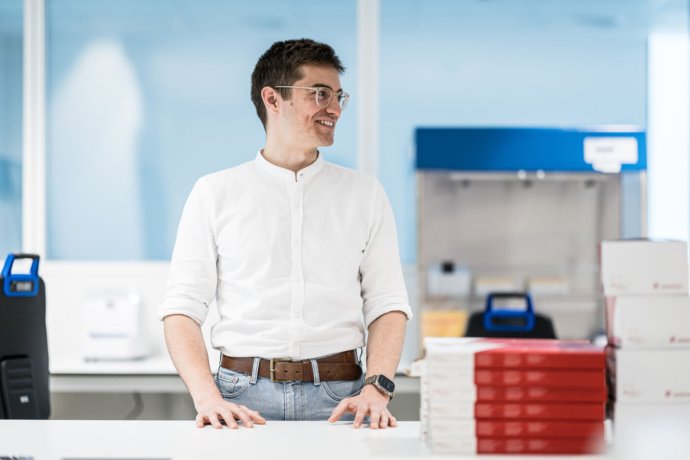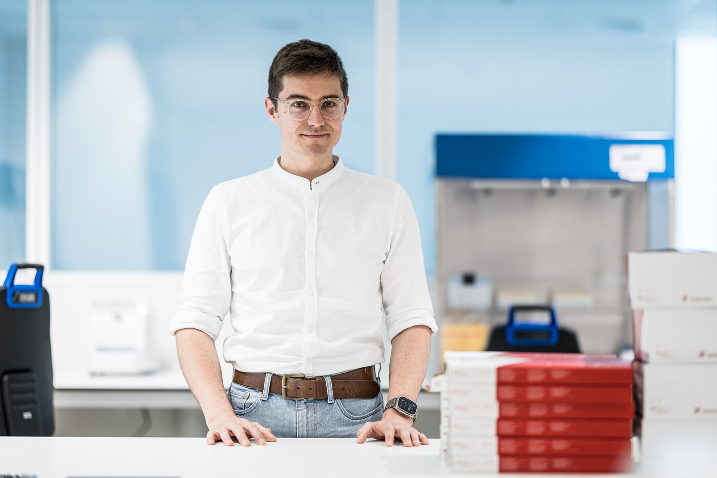 Portrait of Celestin De Wergifosse in the laboratories of Signatur BioSciences, the company of which he is CEO, in Liege, Belgium, May 21, 2025.
