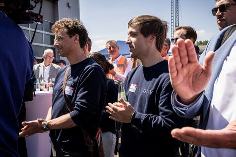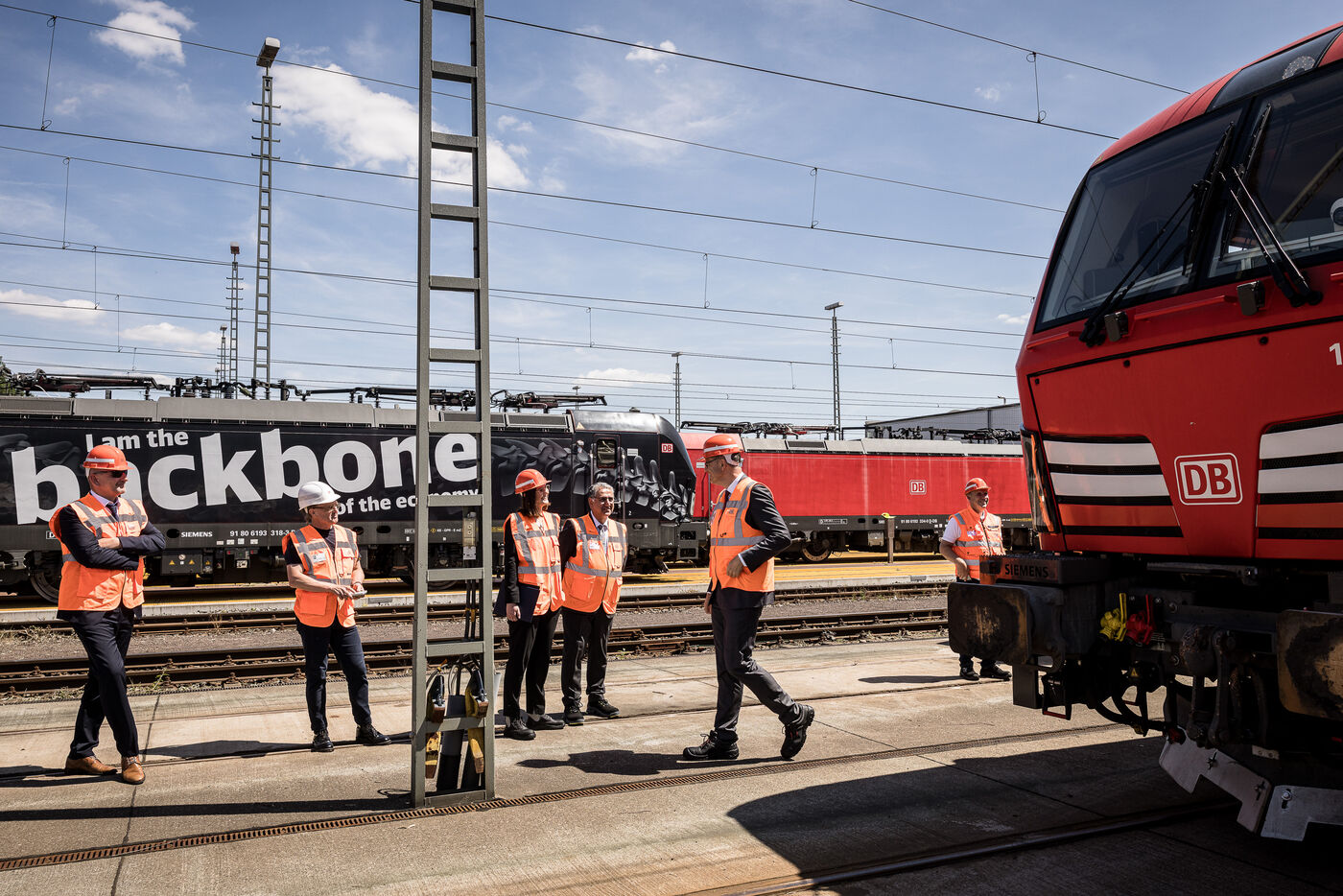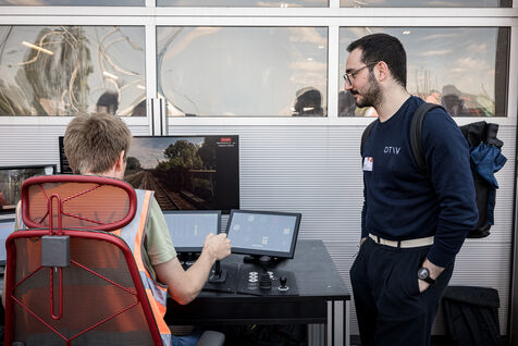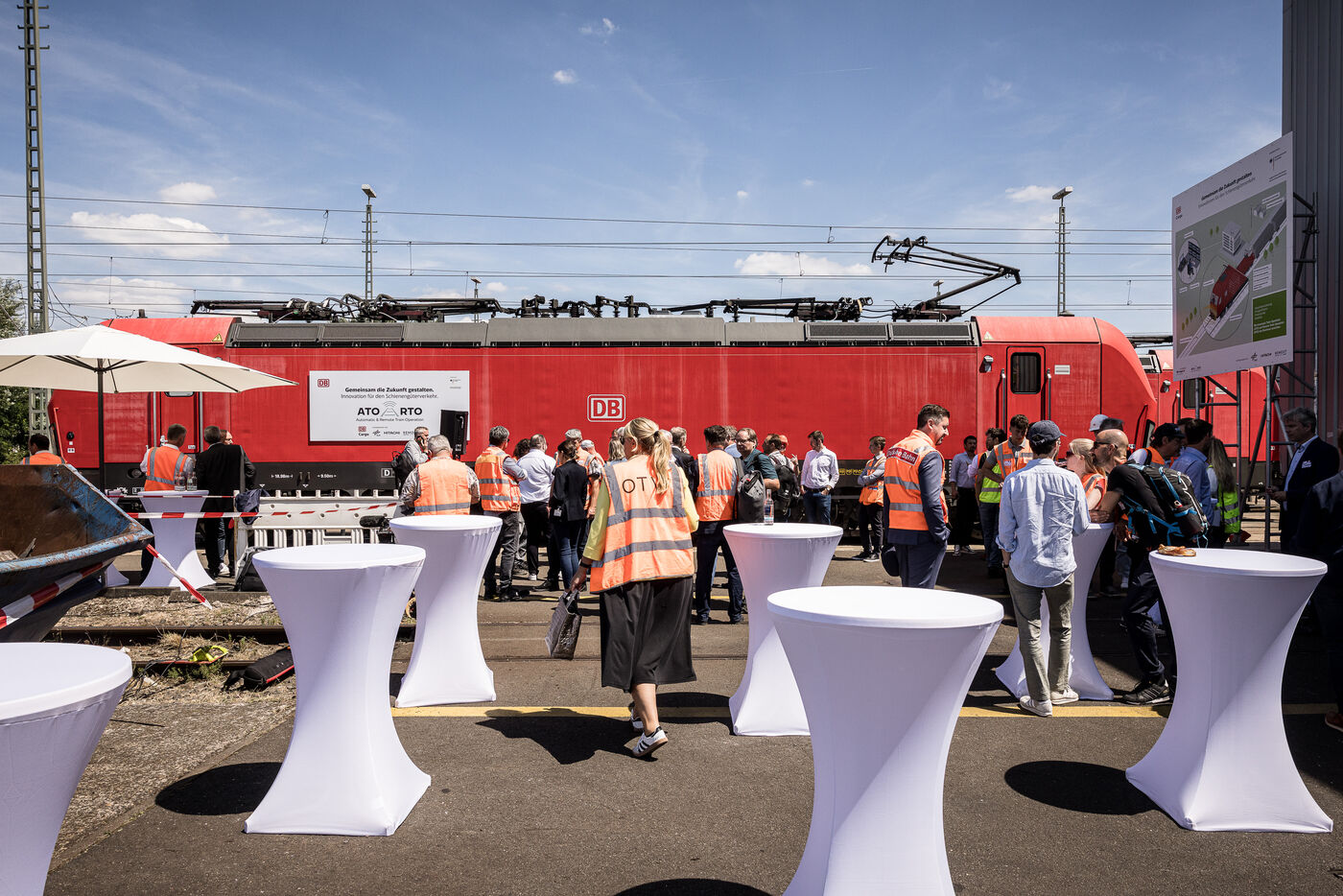 Otiv has developed the technology needed to launch the first automated freight train line with Deutsche Bahn. Inauguration in the presence of the team and the German Minister of Transport, Patrck Schnieder, in Koln, Germany, July 4, 2025.