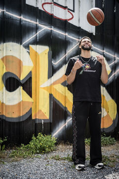 Portrait of Ajay Mitchell, Belgian basketball player for the NBA team Oklahoma City Thunder, in Ans, Belgium, July 30, 2025.