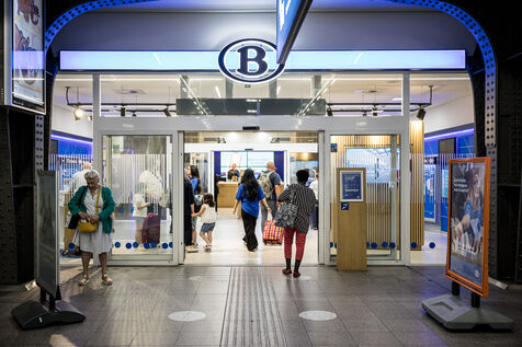 Dans les grandes gares de la capitale comme Gare Centrale ou Gare du Midi, les guichets de la SNCB commencent aussi a se fermer, remplaces par des Travel Store et des bornes automatiques a Bruxelles, Belgique, 20 Aout 2025.