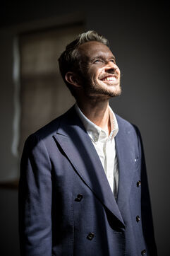 Portrait of Nicolas Godard, French-speaking Belgian real estate influencer at Trust Real Estate in Grez-Doiceau, Belgium, August 14, 2025.