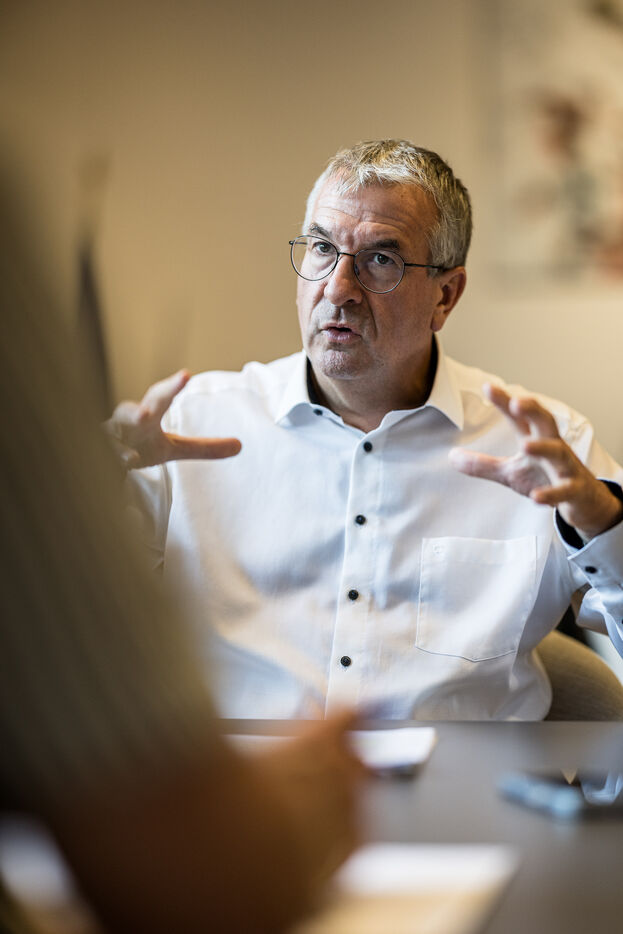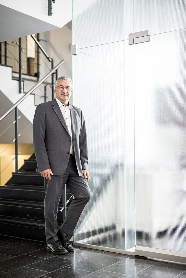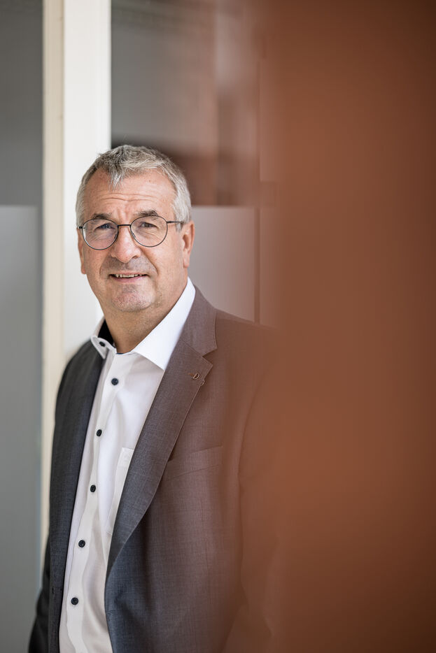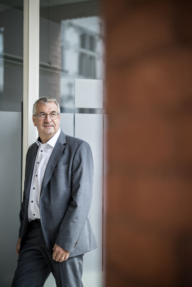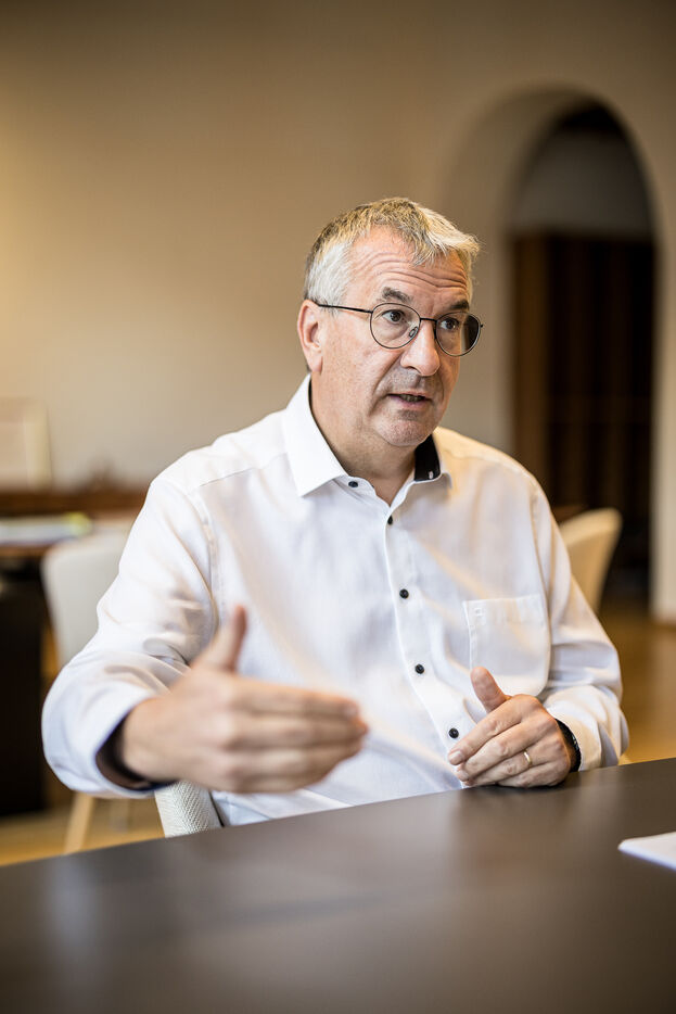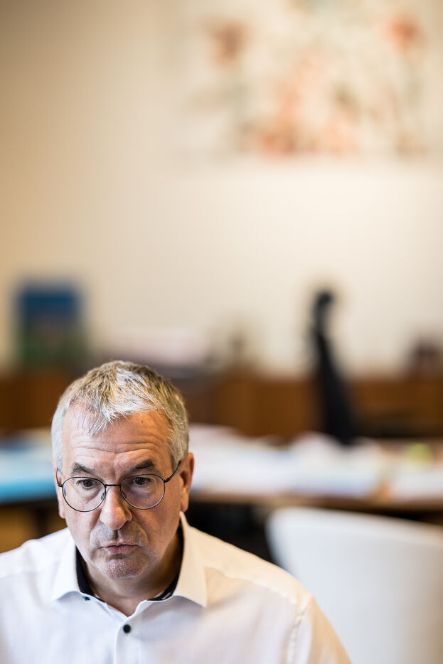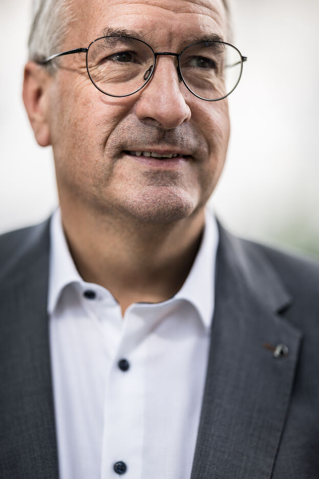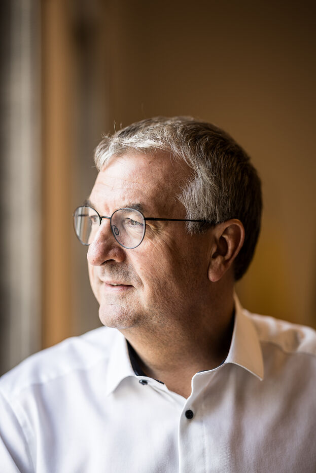 Portrait of Pierre-Yves Jeholet, Vice President and Minister of Economy, Industry, Digital Technology, Employment, and Training in Namur, Belgium, July 16, 2025.