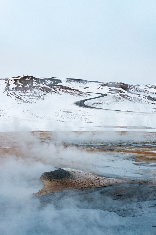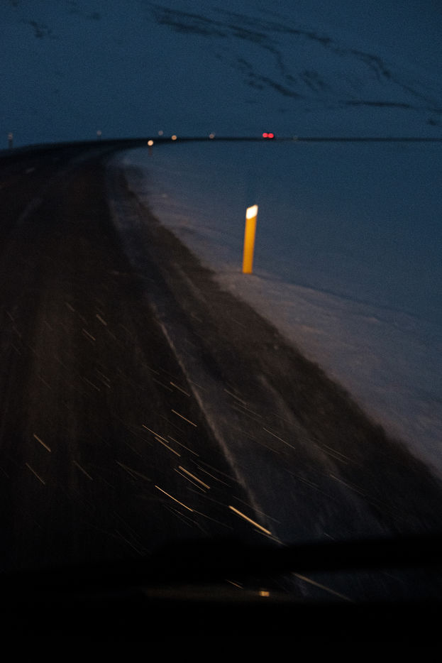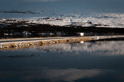 Regard sur les routes islandaises, et particulièrement la Route n° 1. Cet axe de circulation, ouvert dans les années 70 et long de 1339 kilomètres, est la principale route du pays. Elle permet aux touristes de faire le tour de l'île en visitant la plupart des principaux sites touristiques, et aux islandais de se déplacer au quotidien d'une ville à l'autre.