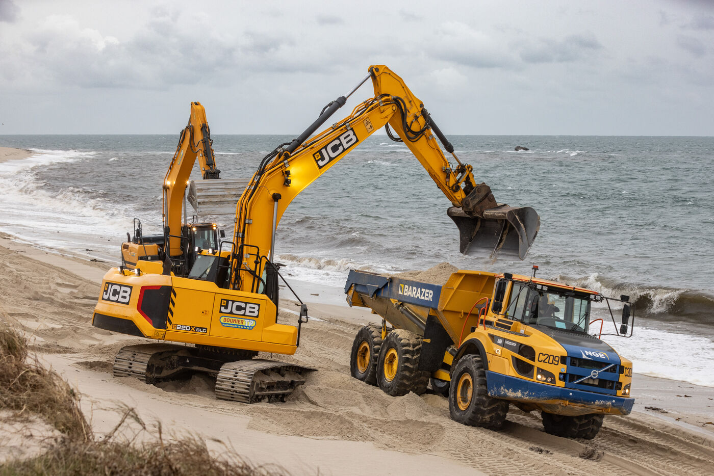 Dune reinforcement and evacuation of a neighborhood a few hours before the arrival of Storm Ciaran in Tréffiagat, a coastal commune in the south of Pays Bigouden in Finistère, Brittany. A strong south-westerly wind is forecast from the evening, and very high swells with potentially submersive waves are expected overnight. The department is under red alert for marine submersion and strong winds. By municipal and prefectoral decree, some of the residents of the Léhan neighborhood, located directly behind the weakened dune, have been evacuated from their homes for the night.