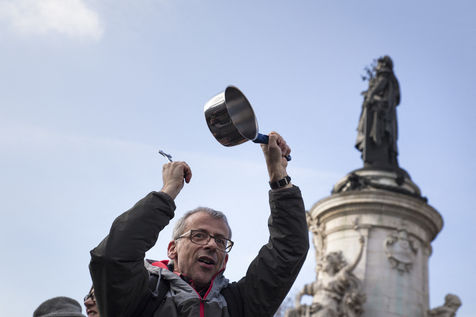 France, Paris, Place de la République. Dimanche 19 février 2017. Suite à l'affaire Penelope Fillon, plusieurs centaines de personnes se sont rassemblées pour protester contre la corruption des élus, demander la fin de leurs privilèges et une moralisation de la vie politique.