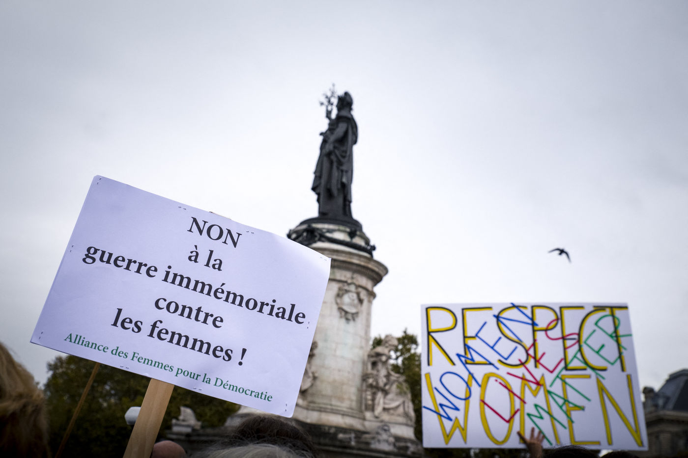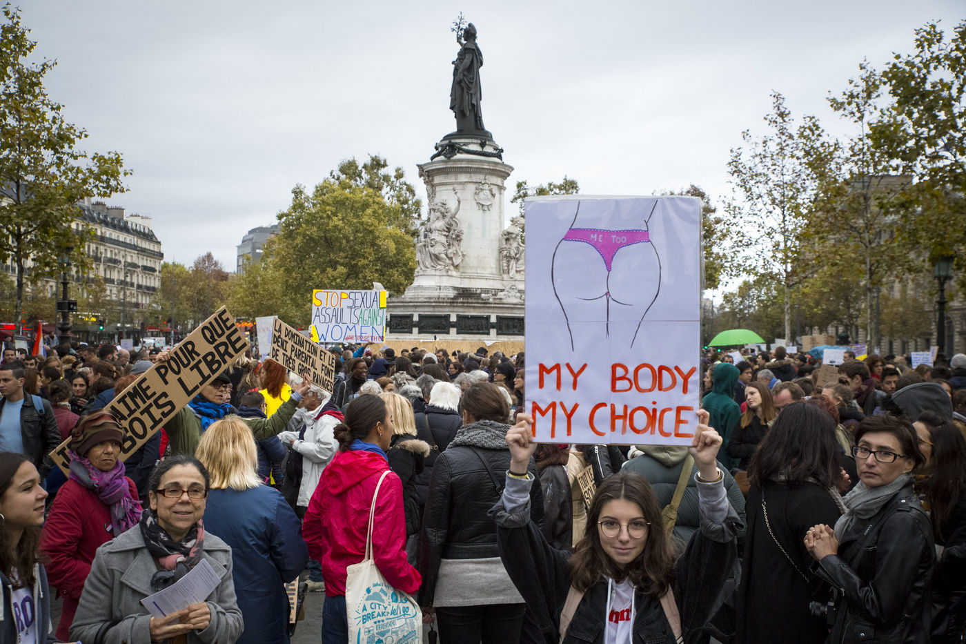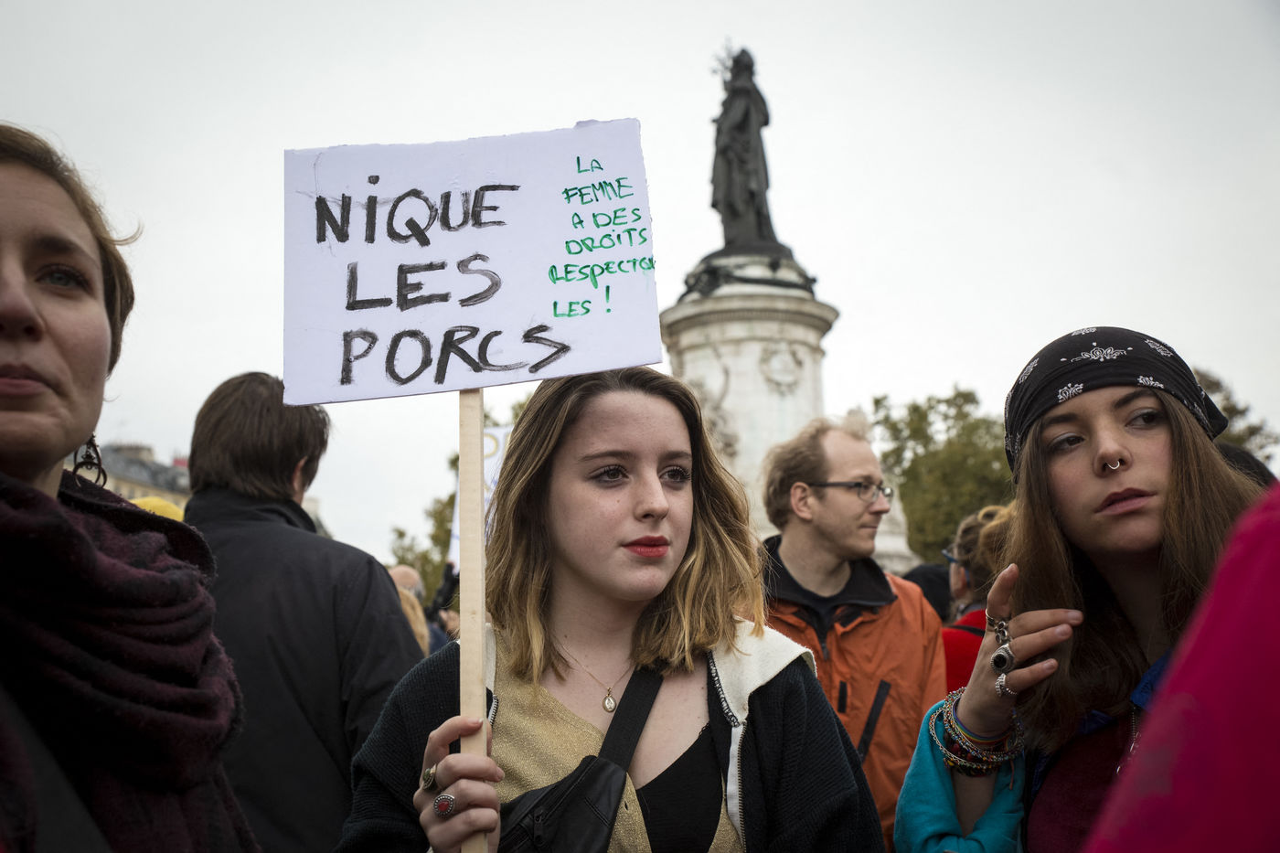 Paris. France. Republic Square. October 29, 2017. Rally "#MeToo, in real life". Rally against harassment and violence against women. The aim of this citizen gathering is to show the extent of the phenomenon of sexual harassment.
