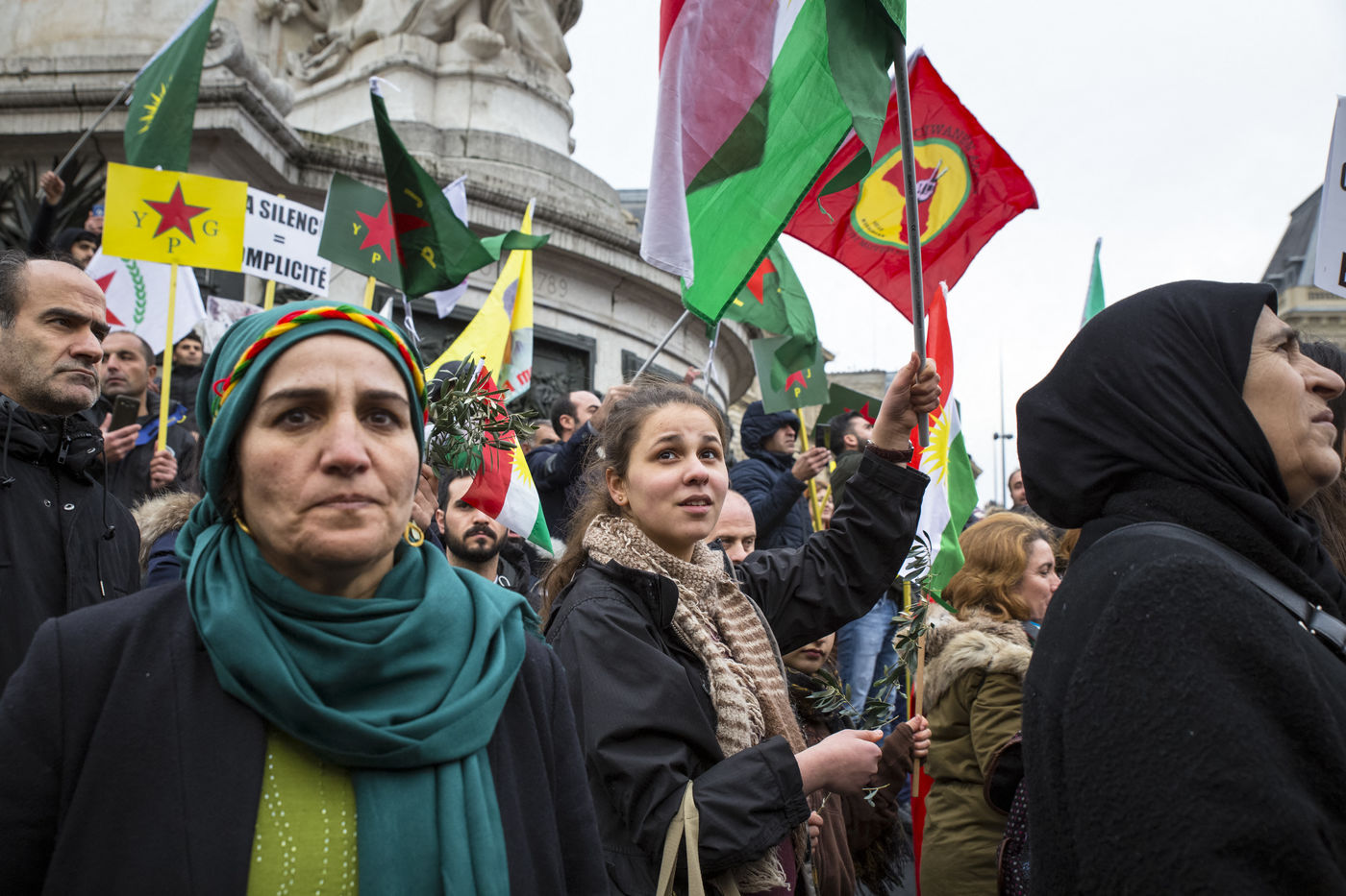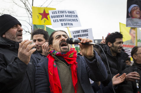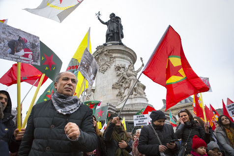Paris, France, January 27, 2018. Demonstration of the Kurdish community to denounce the aggression of the Turkish army against the city of Afrin in northwestern Syria. On Saturday, January 20, Erdogan launched the military operation "Olive Branch" in this isolated canton in west of Rojava.