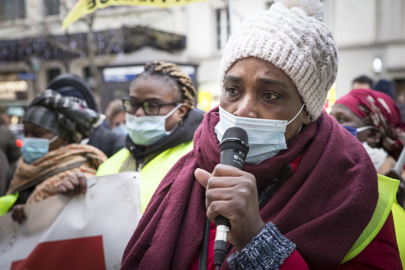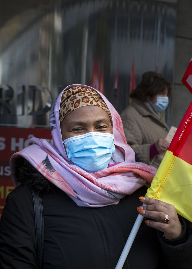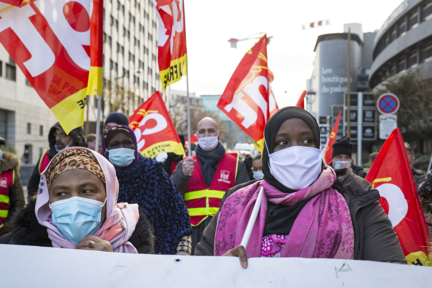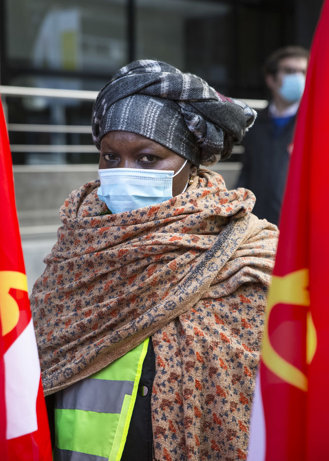 FRANCE, Paris, December 10, 2020. The CGT-HPE union called for a rally to protest against the job cuts and collective performance agreements (2016 labor law agreements). After several announcements of layoffs in the sector, they accuse the large hotel groups of taking advantage of the health crisis to carry out stock market restructuring and outsource services in security or cleaning. This subcontracting makes it possible, during the takeover, to have precarious part-time employees. A small procession composed in part of the housemaids of the hotel Ibis des Batignolles, on strike since July 2019, demonstrated in front of some major Parisian hotels.