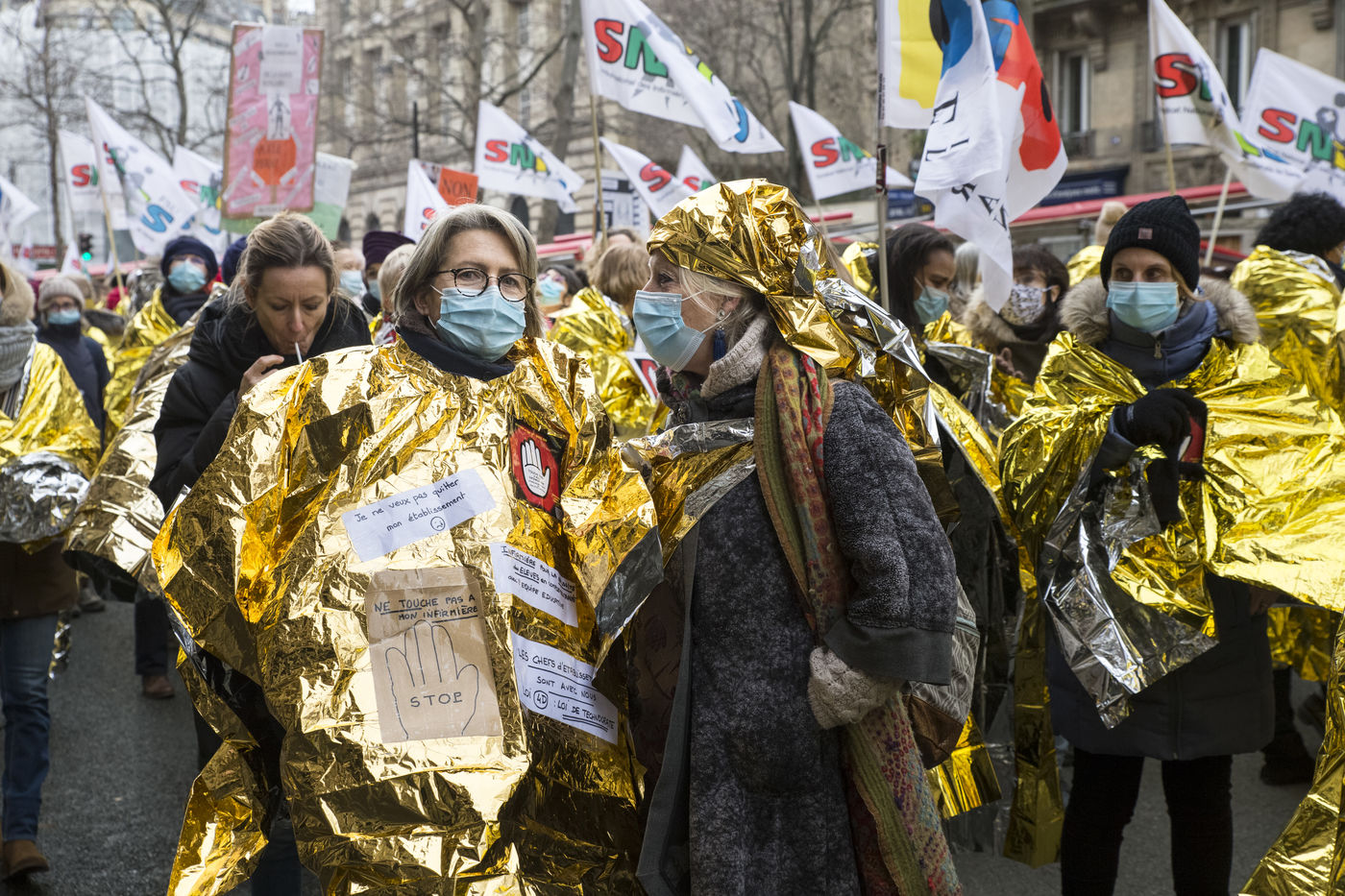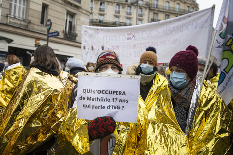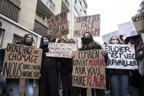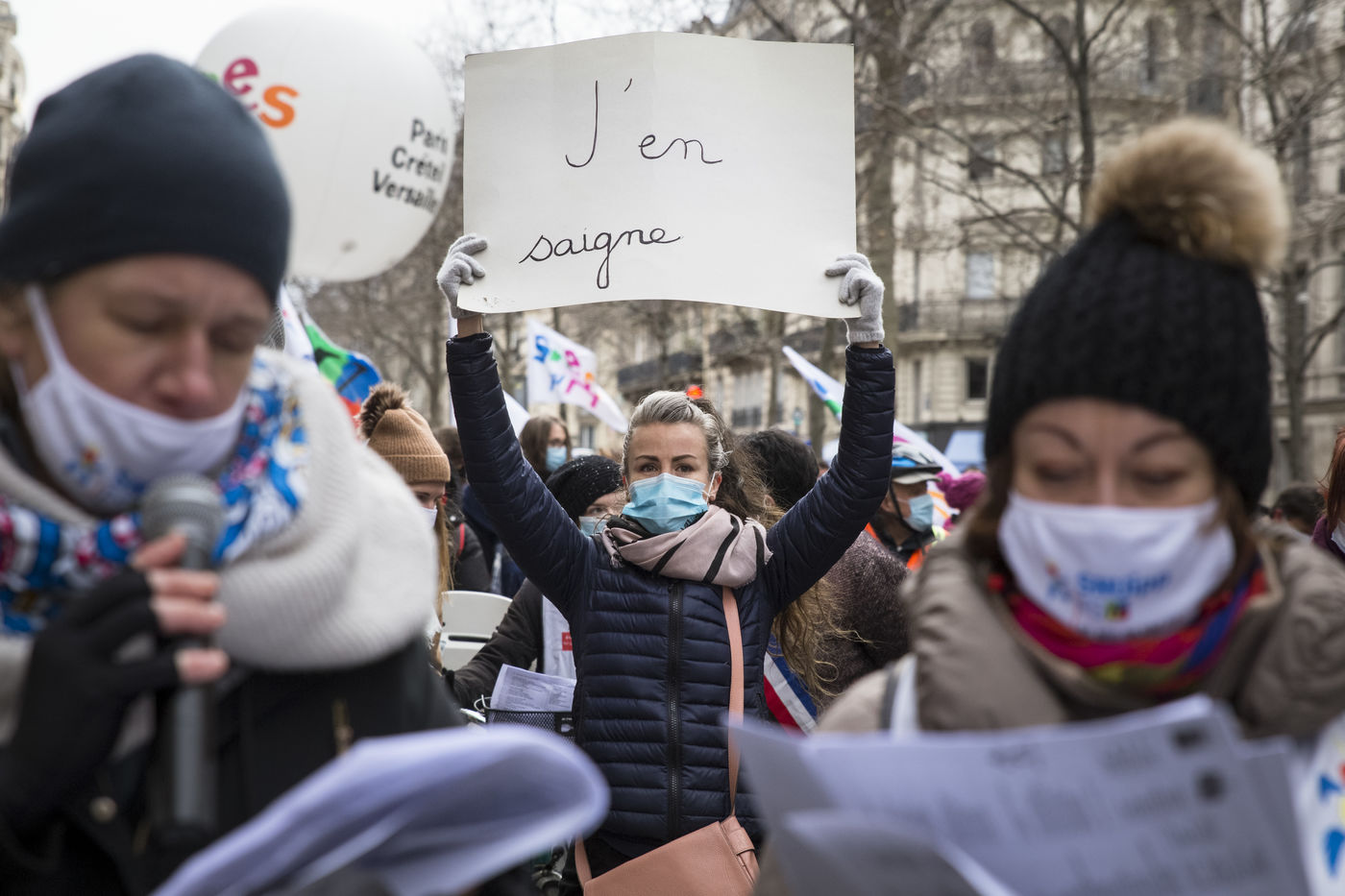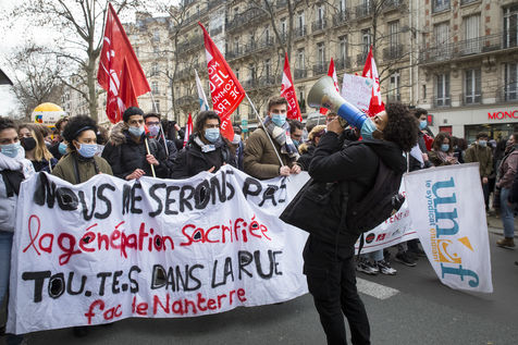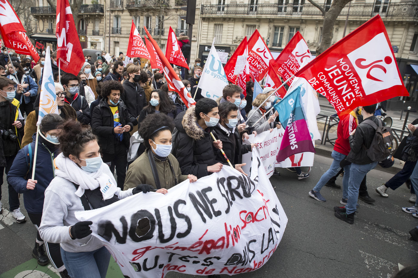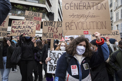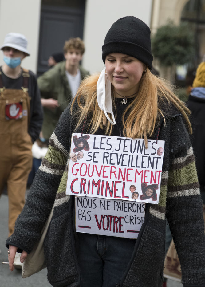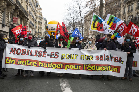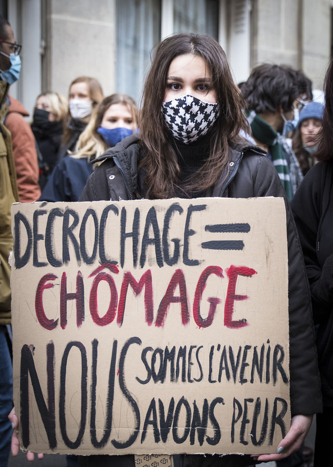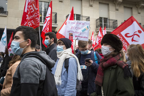 FRANCE, Paris, January 26, 2021. Inter-union demonstration (FSU, FO, CGT, SUD, SNLC, Snalc), of the staff of the National Education to denounce his working conditions, still degraded with the pandemic of Covid-19. Teachers, students and parents of students drew attention to the precariousness and student distress in the management of this health crisis.