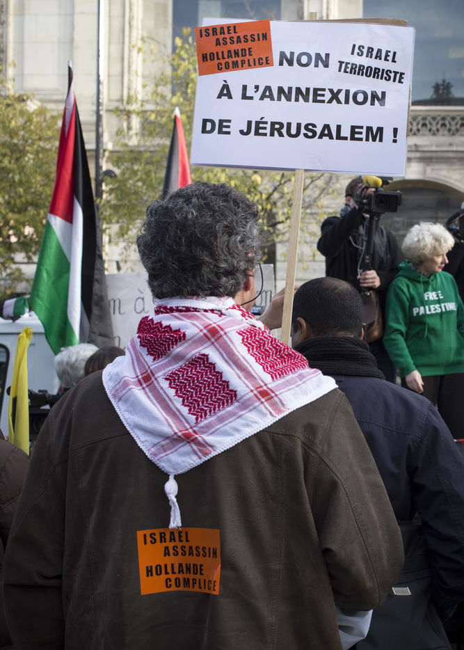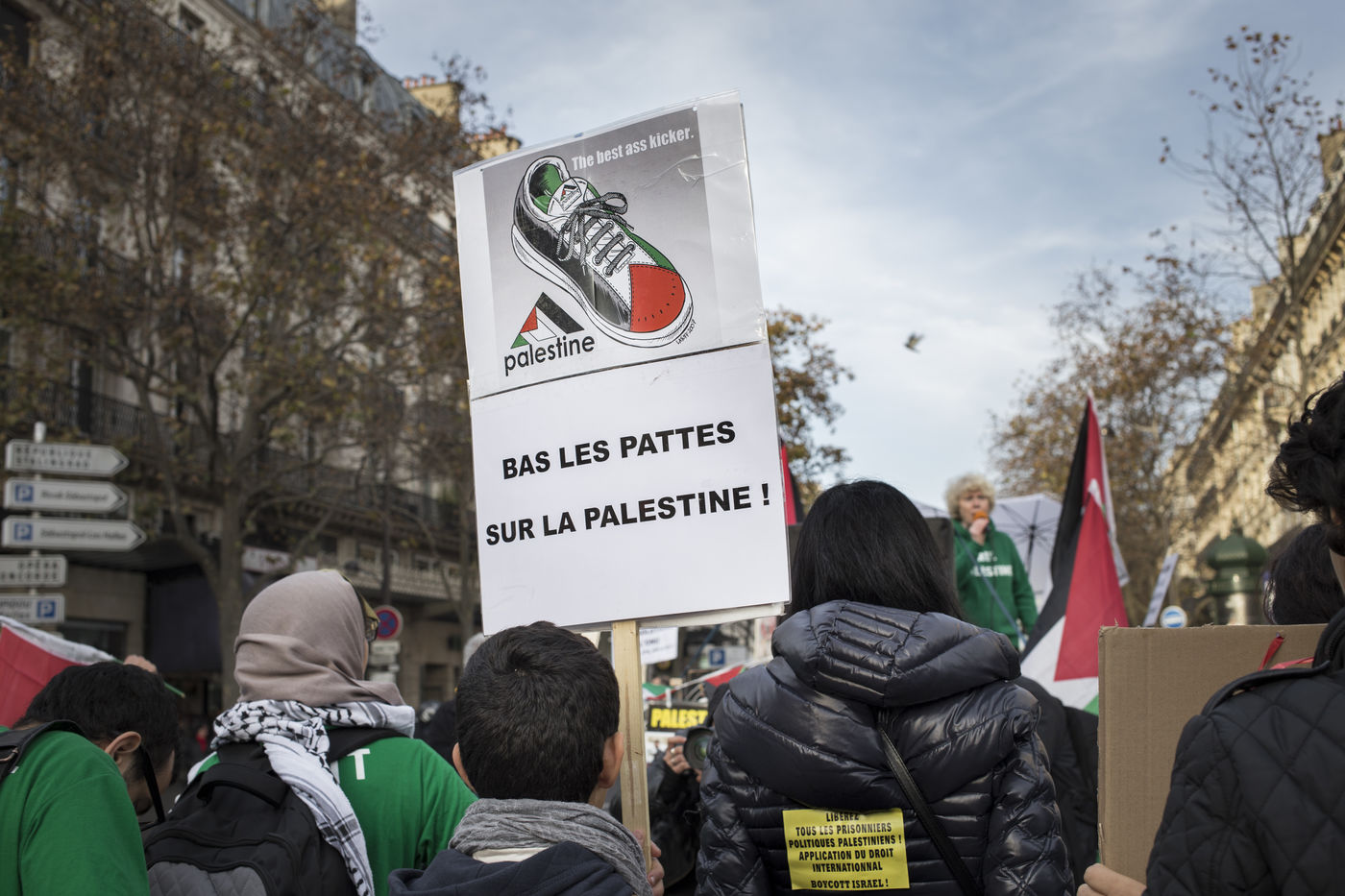Demonstration on the occasion of the international day of solidarity with Palestine. The procession left the place du Chatelet and joined at the end of the demonstration the dozens of people gathered at the place de la Republique for this day.