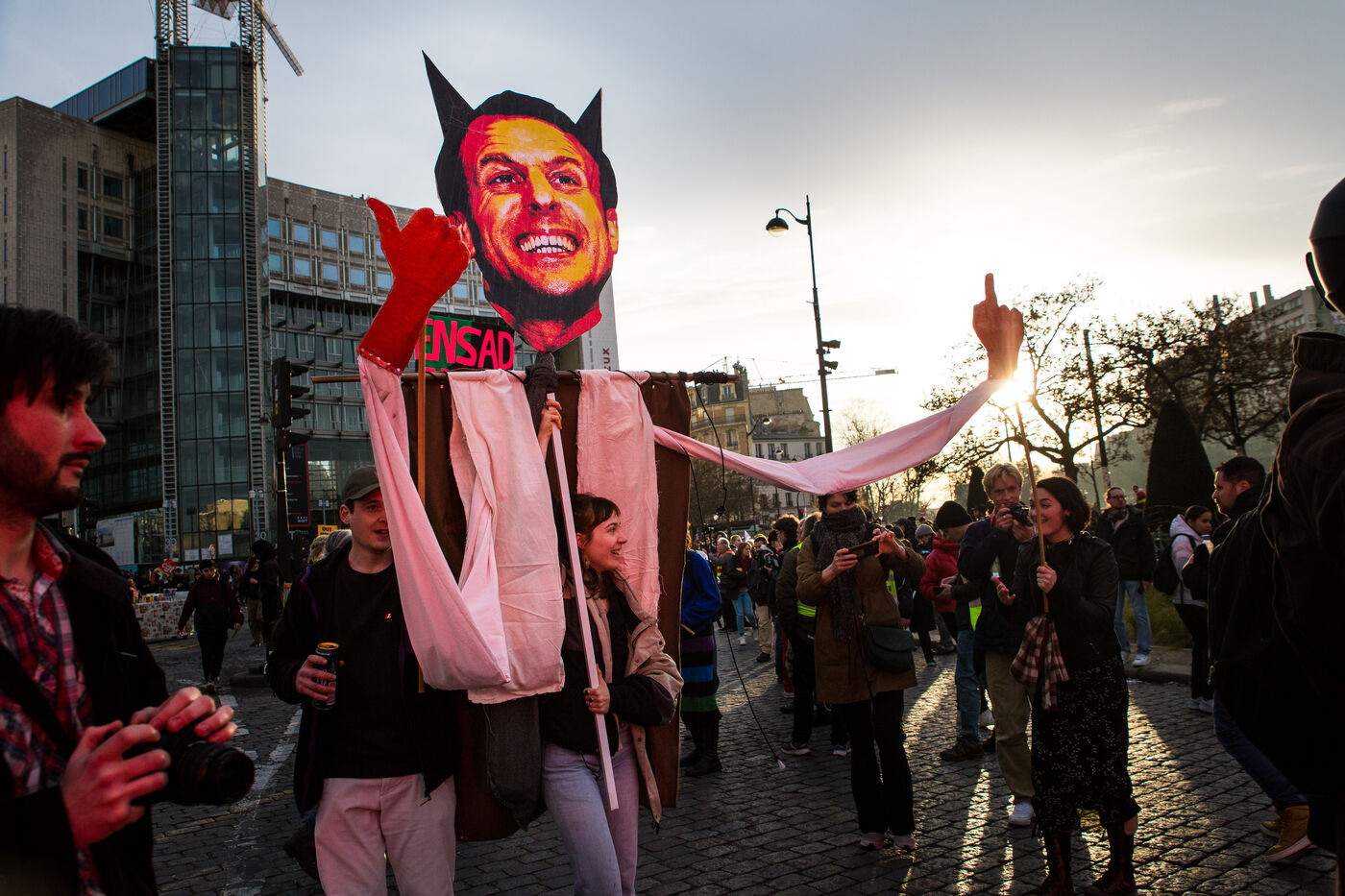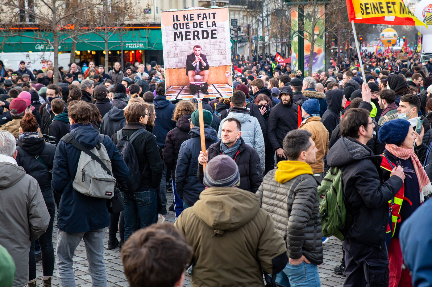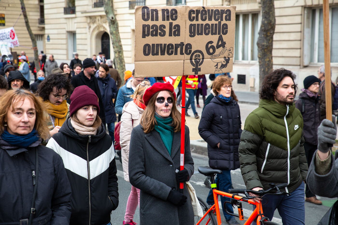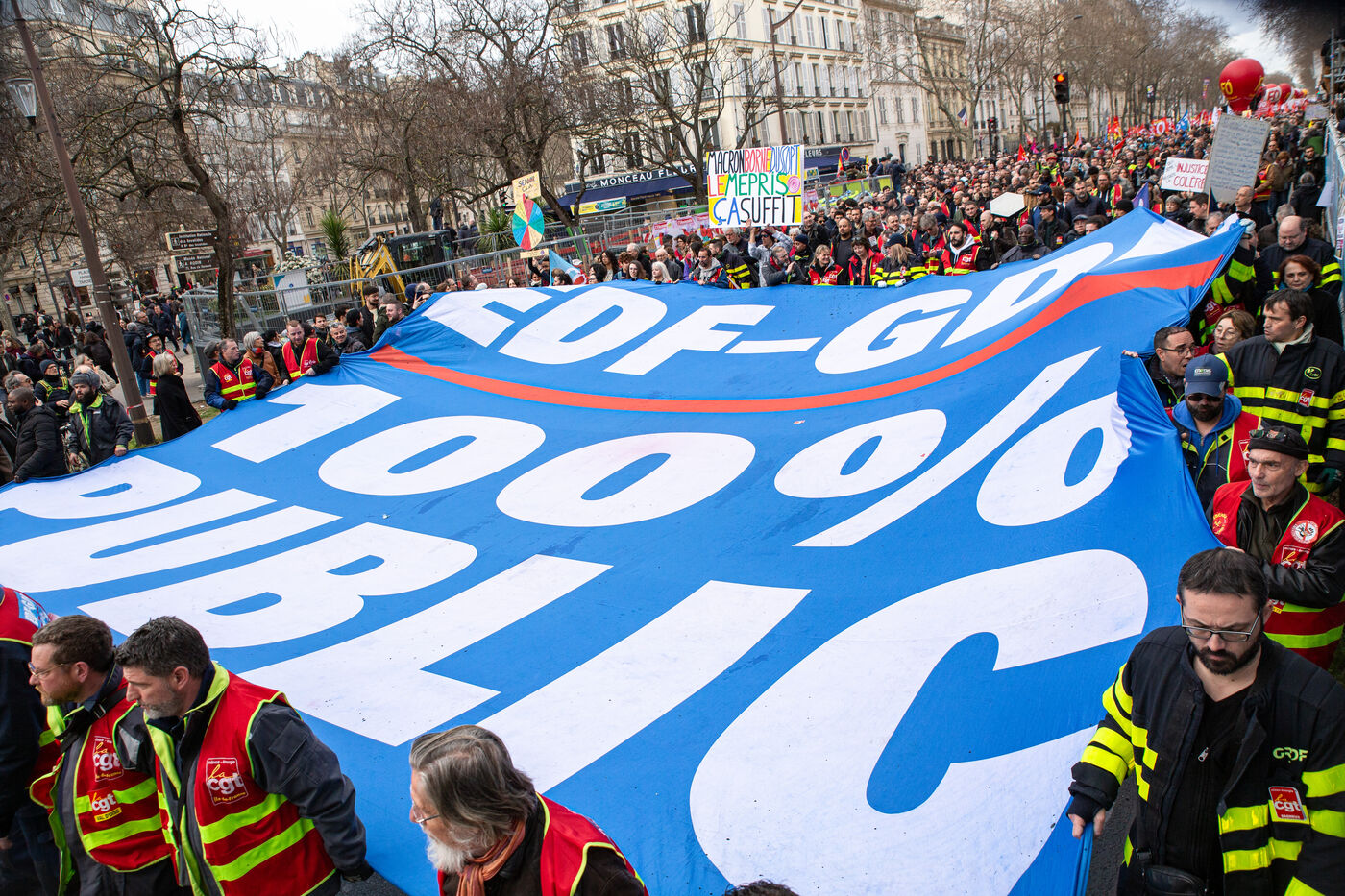 France, Paris, March 15, 2023. Parisian demonstration against the pension reform. Eighth day of mobilization against the reform of the pension system by Elizabeth Borne and her government. The demonstrators are protesting against the postponement of the legal retirement age to 64 years and the acceleration of the increase in the contribution period.